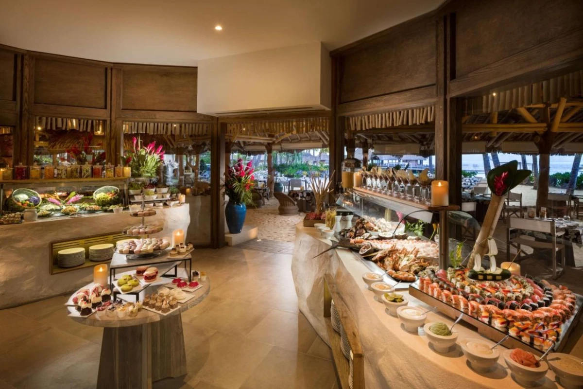 Dining captivates with four distinct restaurants, including Iriatai's French-Polynesian fusion dishes, where fresh ceviche and grilled mahi-mahi shine, and Tamure Beach Grill's toes-in-the-sand seafood feasts. Three bars, including the oceanfront Tarava Bar, serve tropical cocktails and fine wines beneath starlit skies. The Hina Spa, perched on a tropical hillside, offers Polynesian-inspired treatments, while a shimmering infinity pool and fitness centre invite relaxation and vitality. Guests can explore the lagoon with complimentary snorkeling gear or guided paddleboard tours, with attentive Island Host Service curating bespoke experiences for villa guests.