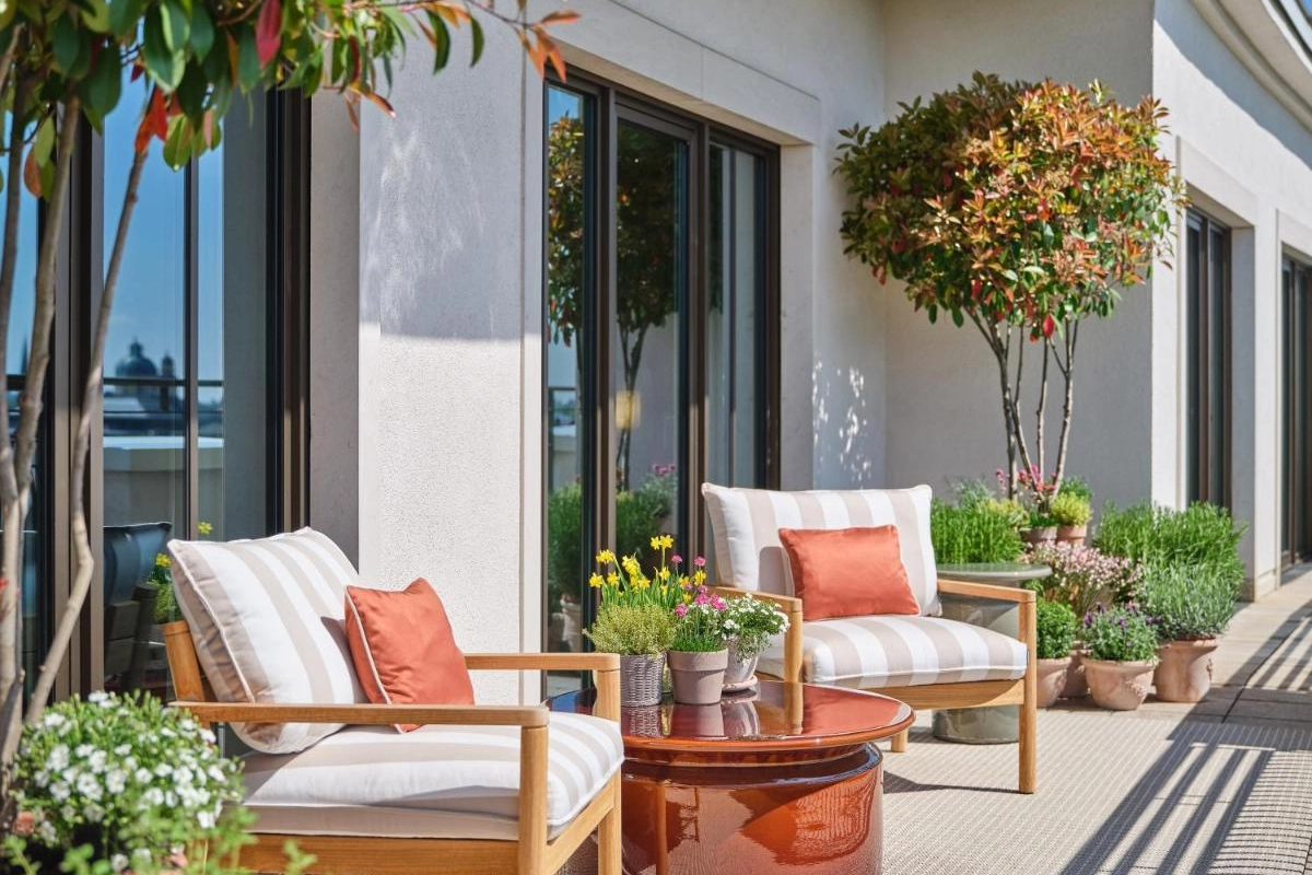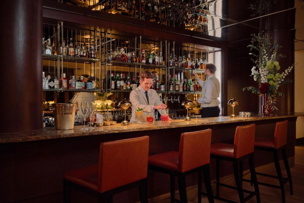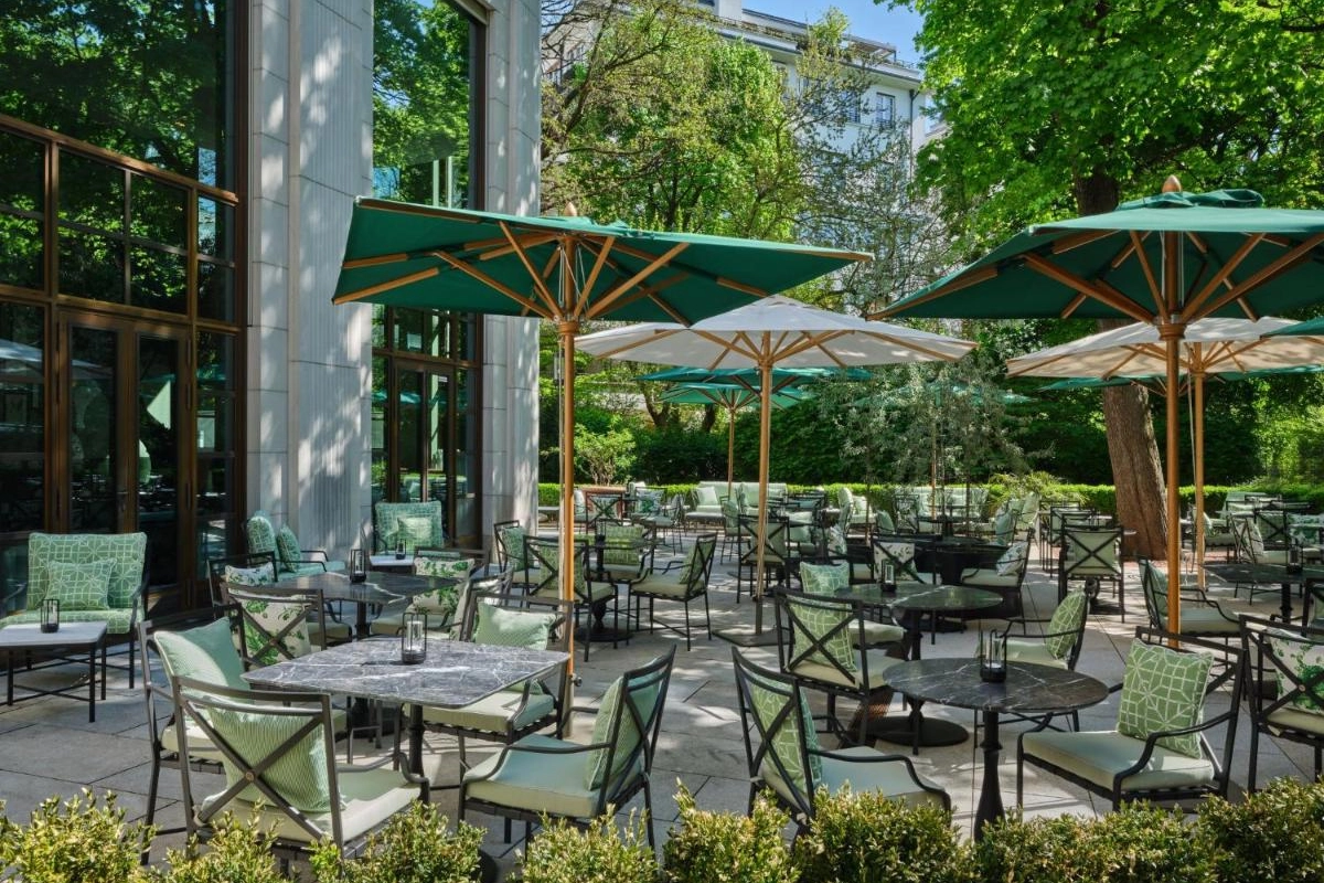 The 160 rooms and suites radiate brightness, each adorned with expansive limestone bathrooms featuring original Nymphenburg porcelain, deep bathtubs, and separate walk-in showers. Floor-to-ceiling windows frame views of the city skyline or the lush Old Botanical Garden, while plush bedding and flat-screen TVs ensure effortless comfort. The Charles Spa, a sanctuary of wellness, invites relaxation with a shimmering indoor pool, soothing sauna, steam room, and a state-of-the-art gym, complemented by bespoke beauty treatments that rejuvenate body and mind.