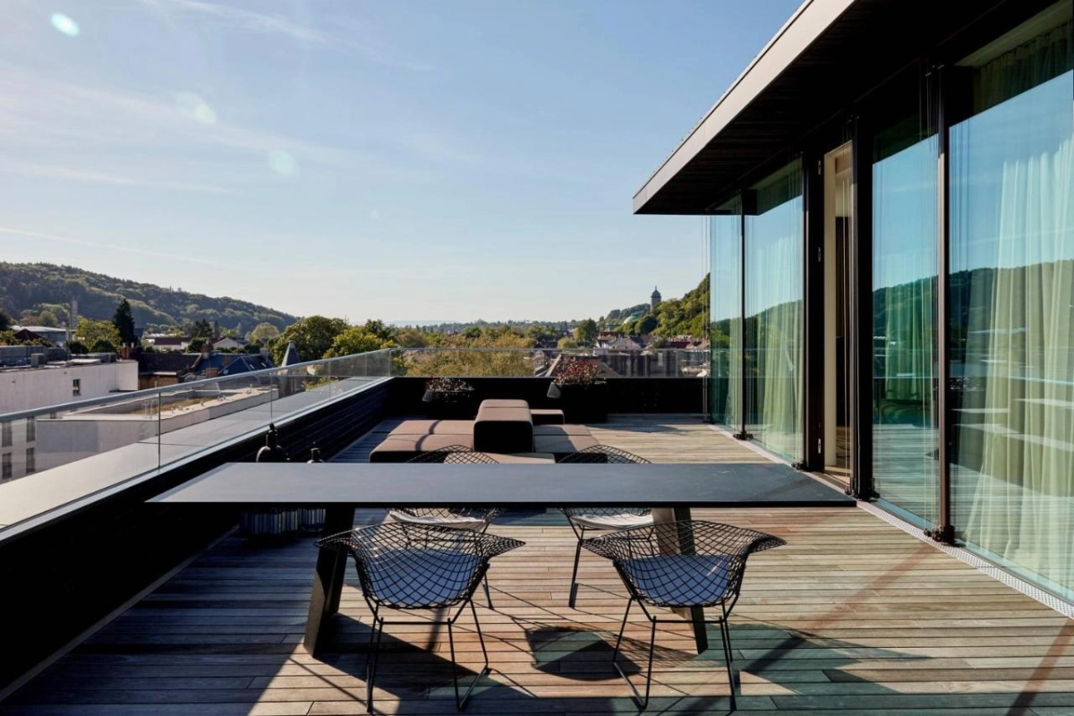 Roomers Baden-Baden, Autograph Collection, a striking five-star hotel near the iconic Festspielhaus, blends bold contemporary design with the serene beauty of Baden-Baden, offering a luxurious retreat in the heart of this historic spa town.