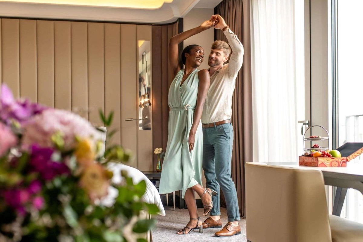 The 150 spacious rooms and suites showcase chic designer furnishings, plush bedding, and thoughtful amenities like espresso machines, Bose sound systems, and sleek bathrooms with luxury toiletries, featuring either a deep bathtub or invigorating shower. The suites elevate the experience with exclusive touches like Japanese toilets, Skinjay™ shower systems, and sweeping views of Frankfurt's skyline. Air-conditioned comfort and curated details create an inviting retreat for discerning travellers.