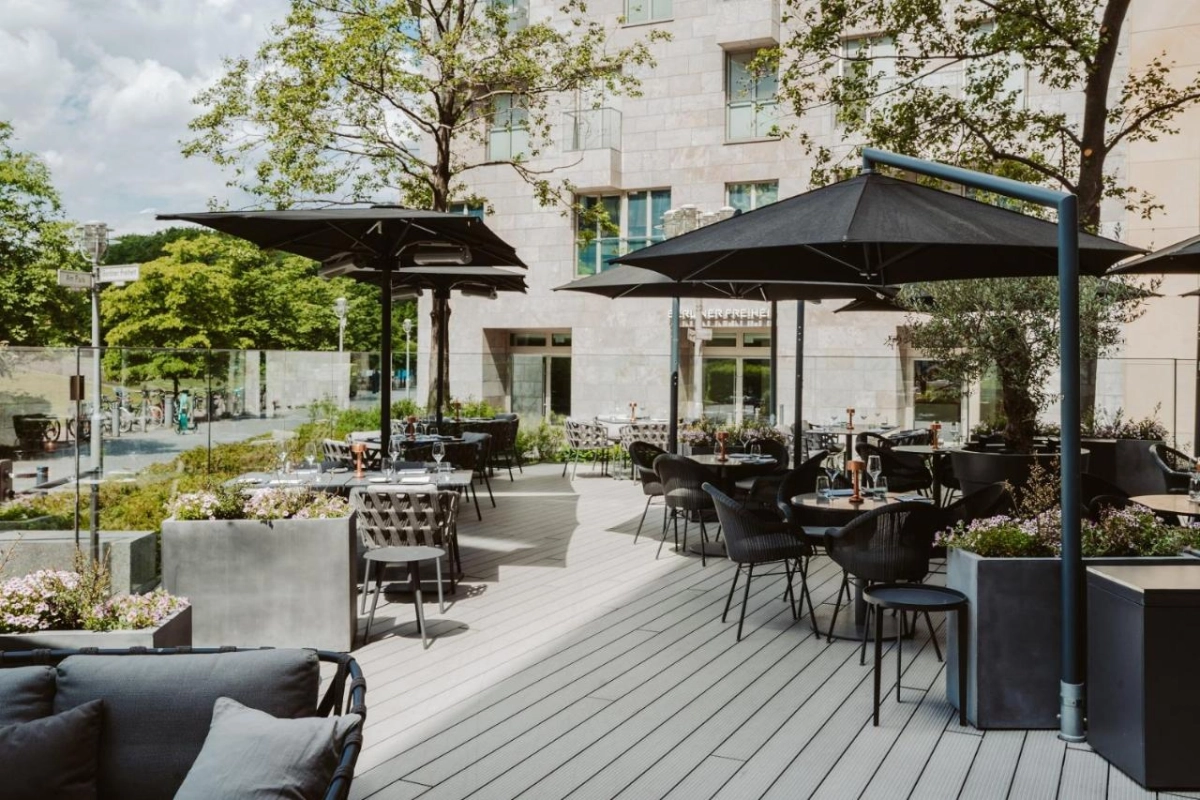 POTS restaurant reimagines modern German cuisine, serving inventive dishes crafted from regional ingredients in a sophisticated yet approachable setting. The Lounge pampers with an array of fine teas and a curated menu of light fare, while The Curtain Club, a celebrated city hotspot, pours expertly crafted cocktails in a sultry ambiance. In warmer months, the Secret Champagne Garden, a hidden rooftop oasis, invites al fresco sipping of champagne and artisanal drinks, surrounded by Berlin's skyline.
