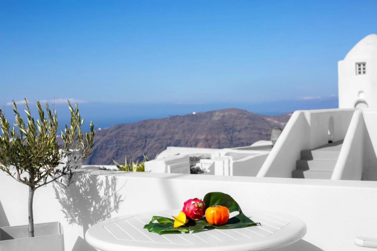 The poolside Caldera Bar serves refreshing cocktails, crisp Santorini wines, and light bites, perfect for savouring against the backdrop of the island's iconic sunsets. Breakfast, offered daily, features fresh pastries, local cheeses, and Greek specialties, enjoyed in an open-air setting with panoramic views. Nearby tavernas in Imerovigli provide authentic Cycladic dining, from grilled octopus to fava bean puree, immersing guests in Santorini's culinary heritage. Evening stargazing from the terrace, paired with live acoustic music on select nights, captures the island's romantic spirit.