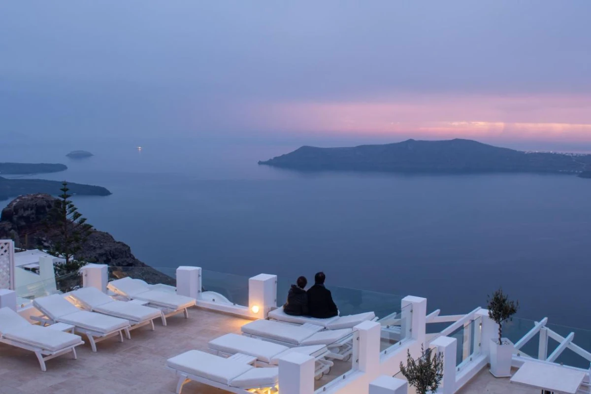 Above Blue Suites, a refined four-star retreat perched atop Santorini's iconic Caldera cliffs, offers an intimate haven for adults seeking romance and tranquility. Crafted in elegant Cycladic style, this boutique property, a member of Small Luxury Hotels of the World, captivates with its breathtaking views of the Aegean Sea and world-renowned sunsets.