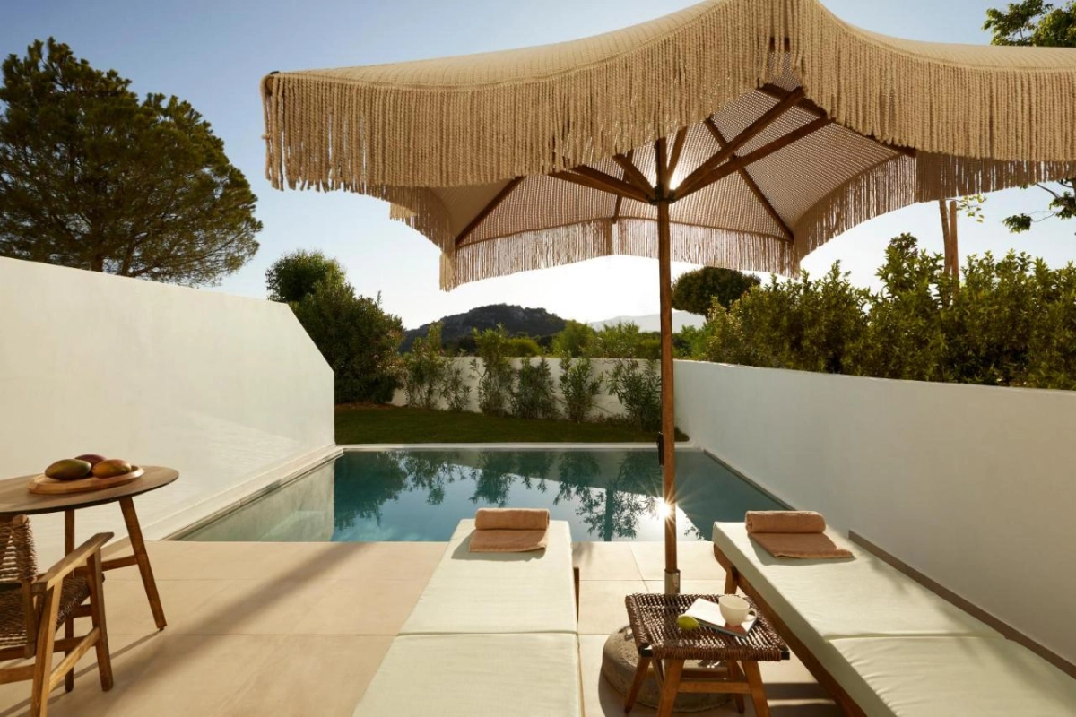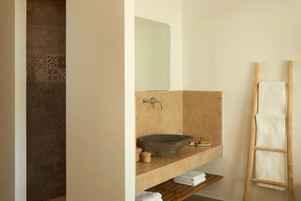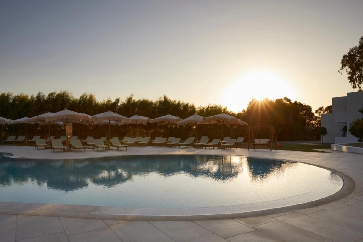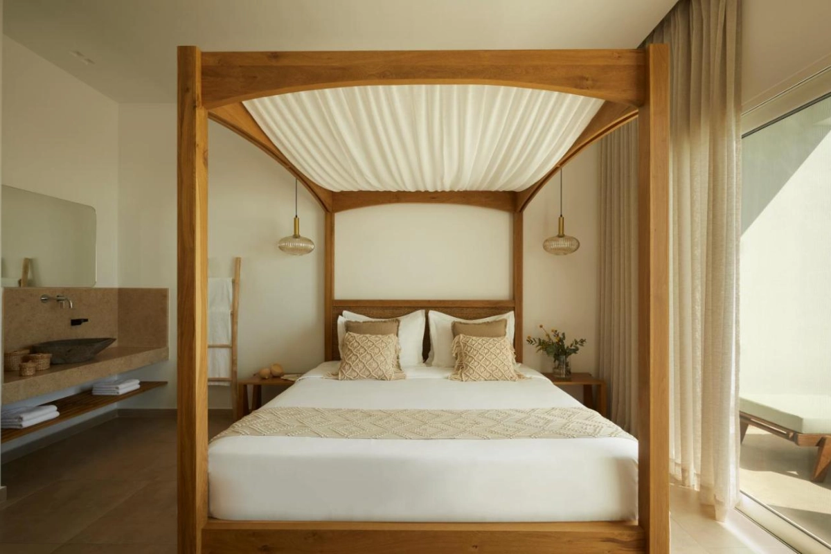 The 91 exquisitely designed rooms and suites feature air-conditioned comfort, flat-screen TVs, kettles, refrigerators, safes, and modern bathrooms with artisanal toiletries. Select suites boast private pools or open-air whirlpools, creating intimate sanctuaries steps from the sea. The lagoon-inspired main pool, surrounded by plush sunbeds and a sun terrace, invites leisurely days, while concierge services arrange tailored experiences like private boat trips or cultural tours to nearby villages.