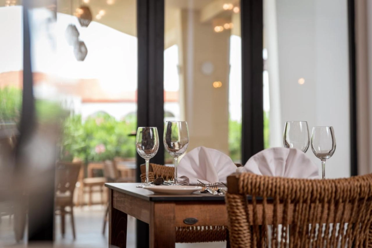 Dining at the resort's main restaurant, Thalassa, showcases a blend of modern and traditional Greek flavours, with an opulent breakfast buffet featuring fresh pastries and local delicacies. The poolside restaurant, Azure, serves light lunches and expertly crafted cocktails, from citrus-infused spritzes to chilled Greek wines, in a breezy, open-air setting. Evening entertainment, including live music and occasional DJ performances, transforms the chic pool bar into a vibrant gathering spot, perfect for savouring Rhodes' enchanting nights.