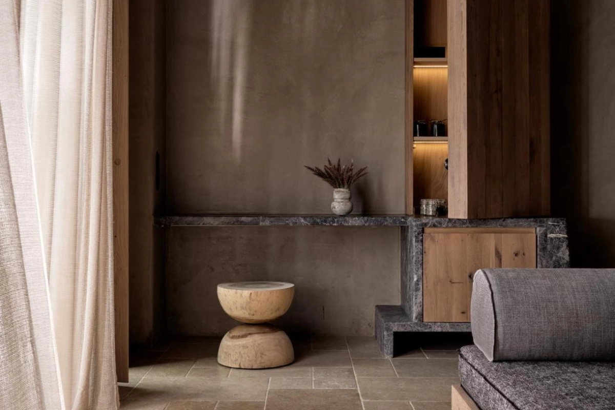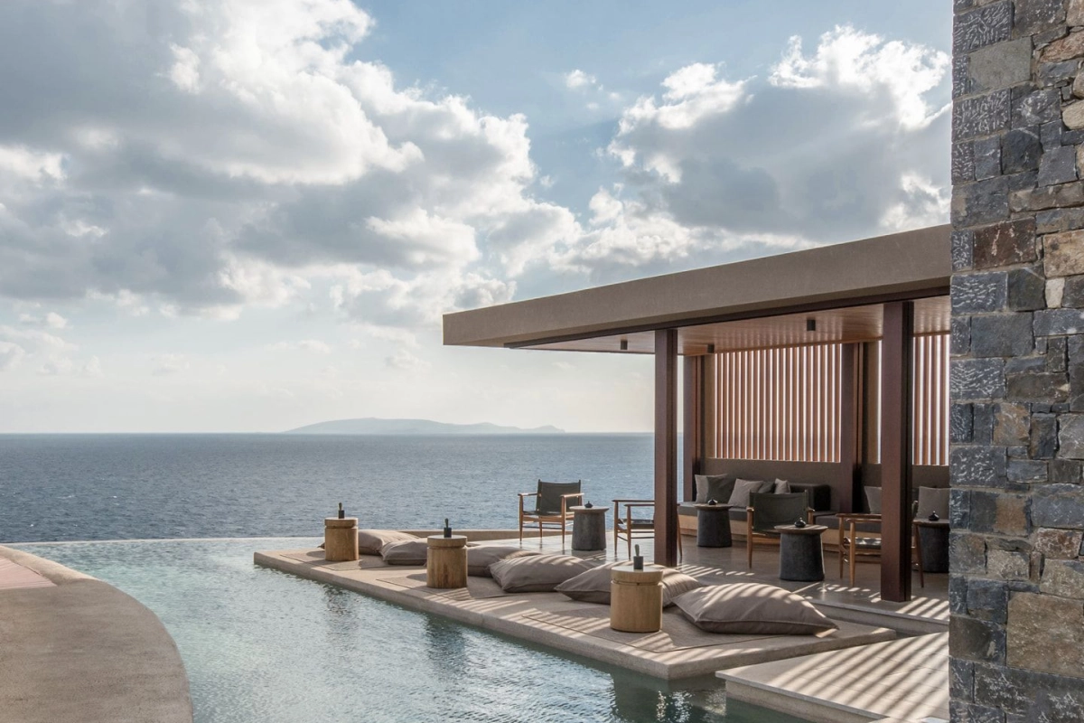 The 49 cave-inspired suites and villas embody organic sophistication, with natural stone walls, handcrafted furnishings, and private infinity pools that seem to merge with the Aegean's azure expanse. Each residence offers plush bedding, spacious bathrooms with artisanal toiletries, and secluded terraces or balconies framing breathtaking sea or garden views, ensuring a private sanctuary for rejuvenation.