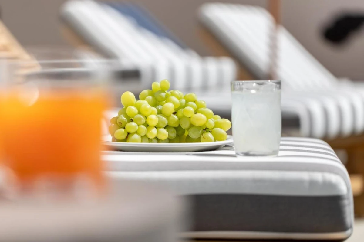 Dining unfolds with a curated buffet breakfast, featuring fresh pastries and local delicacies, savoured in a refined area with sea views. The elegant restaurant offers Mediterranean-inspired dishes crafted from island-sourced ingredients, enjoyed on a terrace under the Santorini sun. The chic poolside bar serves expertly crafted cocktails and light fare, perfect for lingering by the shimmering outdoor pool, framed by plush sunbeds and shaded parasols. A tranquil lounge area invites leisurely moments, while curated excursions, including diving or snorkeling, immerse guests in the island's coastal allure.