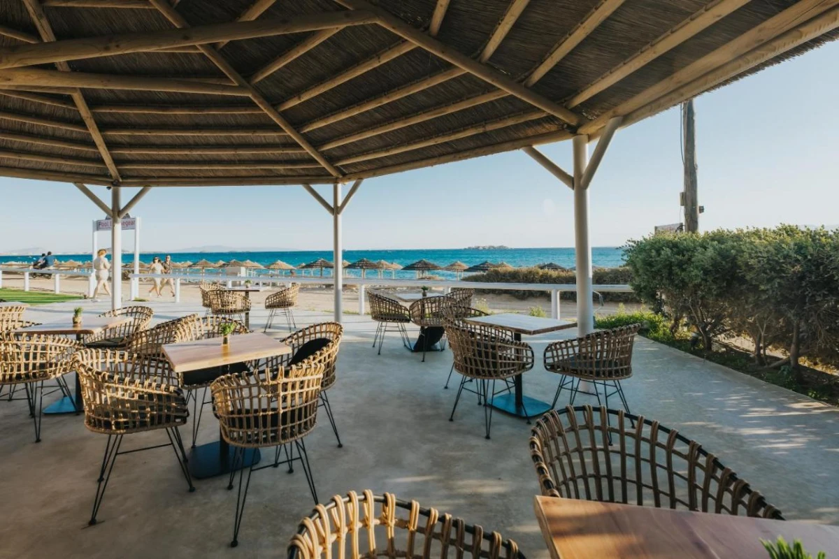 Dining at the hotel's sophisticated restaurant delights with Mediterranean-inspired cuisine, showcasing fresh local ingredients, savoured on a terrace overlooking the sea. The stylish poolside bar crafts expertly mixed cocktails and light fare, perfect for leisurely moments by the shimmering seasonal pool. A state-of-the-art fitness centre and curated activities like cycling or hiking invite exploration of Naxos's scenic landscapes, while a tranquil lounge area offers a refined space to unwind.