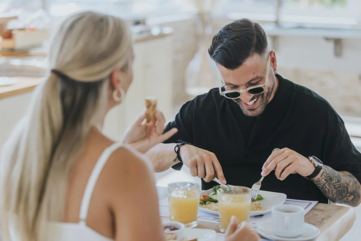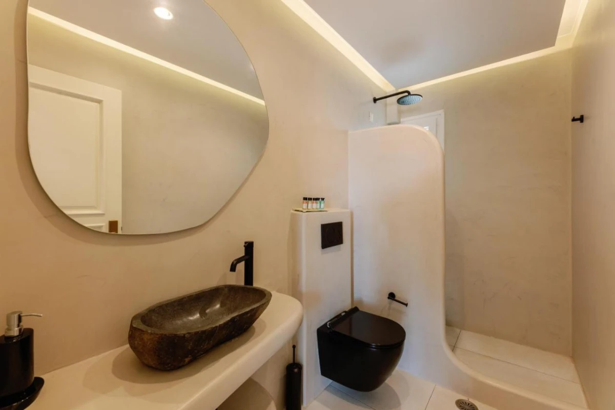 The 70 elegantly designed rooms and suites blend modern sophistication with island aesthetics, featuring air-conditioned comfort, flat-screen televisions, kettles, safety deposit boxes, and private bathrooms with premium toiletries and showers. Each accommodation opens to a private terrace, with select suites boasting indulgent jacuzzis or private pools, framing serene views of the deep blue bay or verdant gardens, creating an intimate retreat for relaxation.