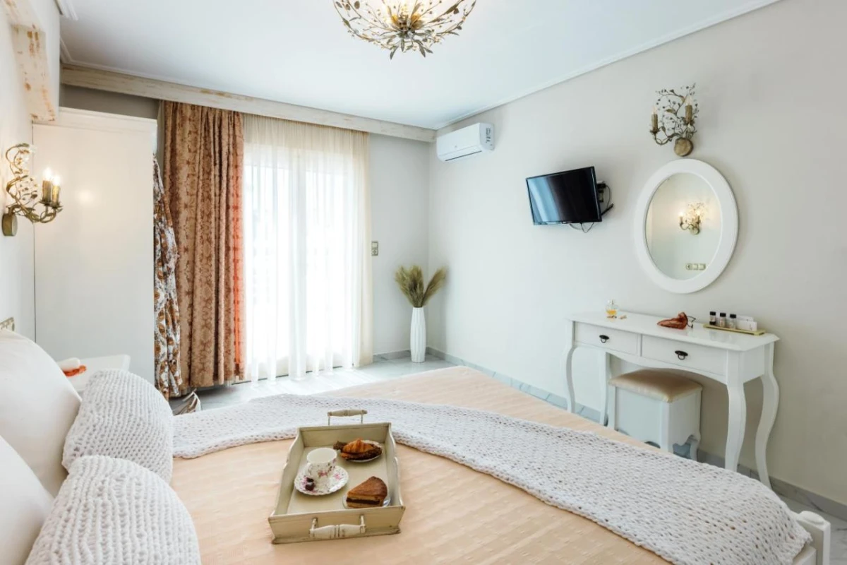 Aegean Palace, a refined four-star hotel in the serene Plaka enclave of Naxos, captivates with its Cycladic charm and lush gardens, offering an adults-only escape steps from the turquoise shores of Plaka Beach.