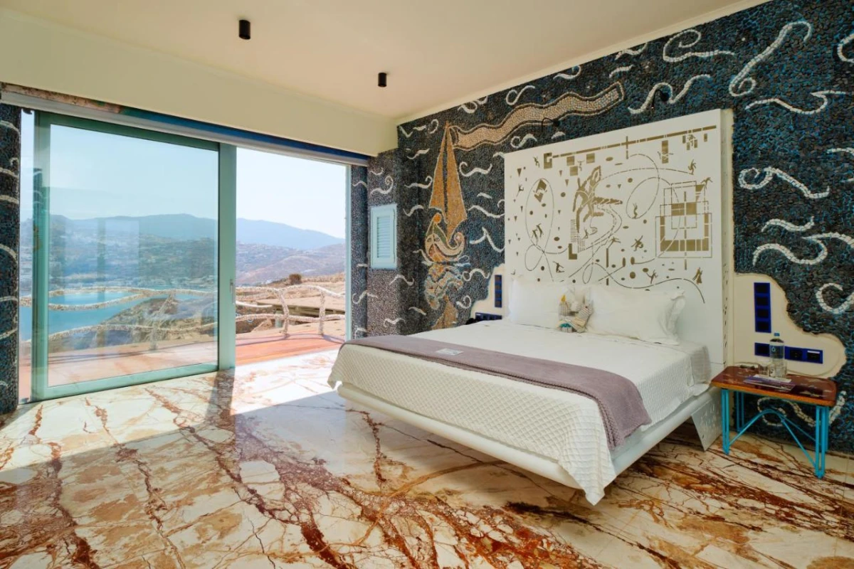 The 14 exquisitely crafted suites feature air-conditioned comfort, flat-screen televisions, minibars, iPod docks, and luxurious bathrooms with premium toiletries and hairdryers. Select suites include separate bedrooms, private pools, or furnished balconies with captivating Aegean Sea views, adorned with original handicraft artwork, creating an intimate sanctuary for relaxation.