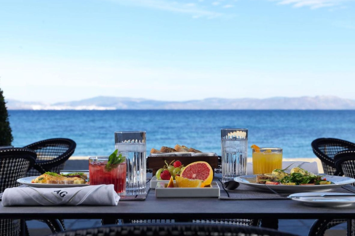 A daily breakfast, offering à la carte, continental, or Full English/Irish options, brims with fresh pita, local honeys, and robust espresso, savoured in a sunlit lounge. Guests can delve into curated pursuits, from exploring the Tree of Hippocrates to beachside lounging, capturing Kos's timeless cadence with effortless poise.