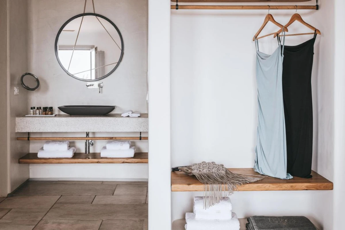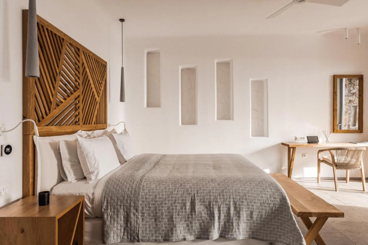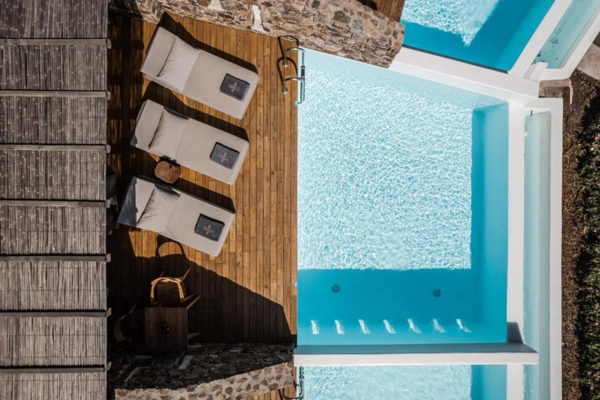 The 25 exquisitely designed rooms feature air-conditioned comfort, flat-screen televisions with satellite channels, coffee machines, minibars, safety deposit boxes, and luxurious bathrooms with premium toiletries and showers. Each room opens to a private balcony or terrace, unveiling captivating sea or pool vistas, creating an intimate sanctuary for relaxation with natural materials and elegant furnishings.