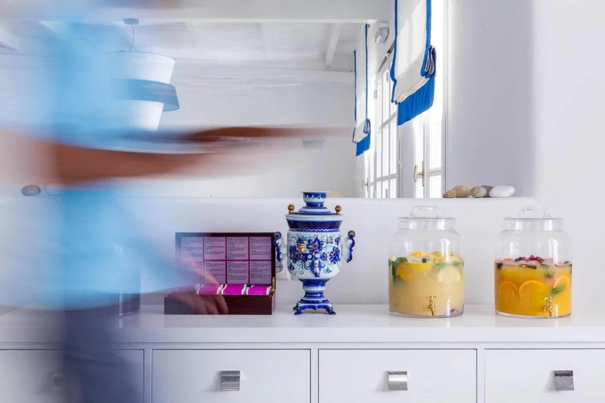 The 40 airy rooms and suites, inspired by the island's luminous landscape, feature air conditioning, satellite flat-screen televisions, minibars, and private bathrooms with premium toiletries. Many offer private balconies or terraces with breathtaking Aegean Sea views, creating serene havens of comfort and style.