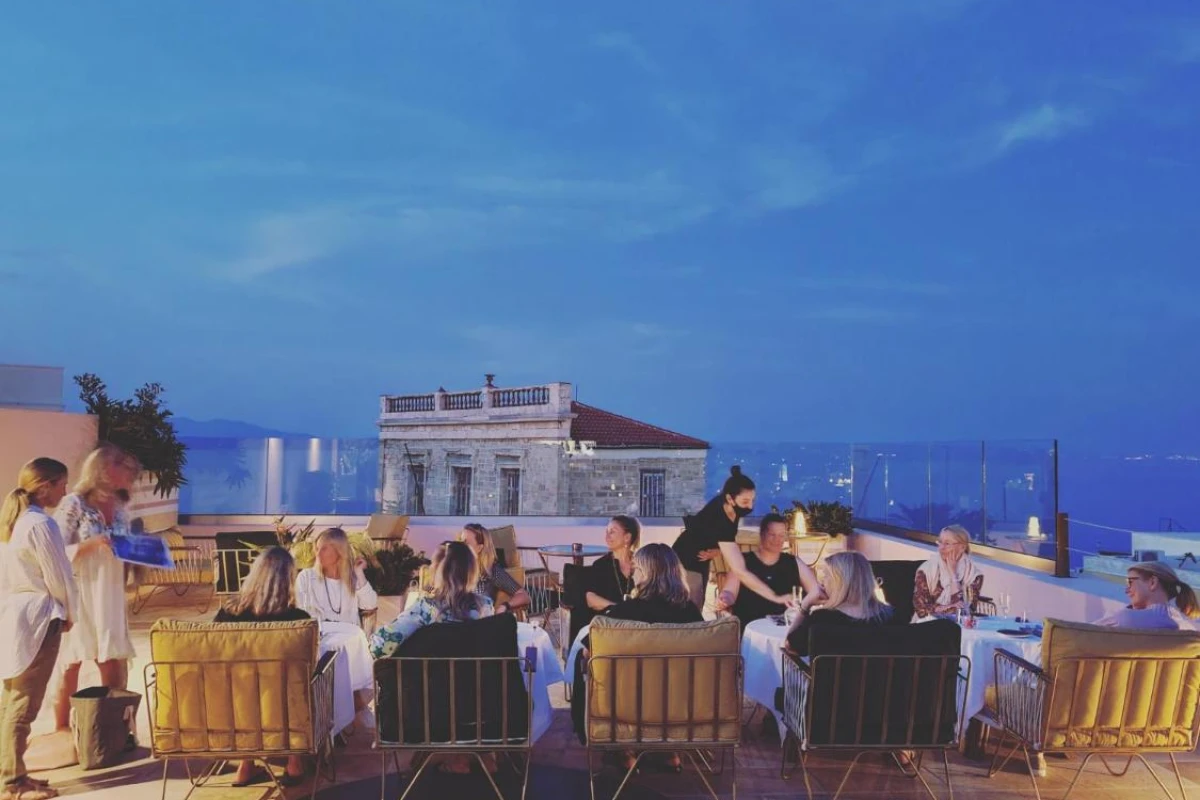 Dining at Aristide delights with a refined breakfast of local Syros cheeses, fresh pastries, and organic produce, served in the serene garden setting. The rooftop restaurant presents Mediterranean dishes crafted from island ingredients, paired with fine Greek wines and enjoyed with sweeping sea vistas.