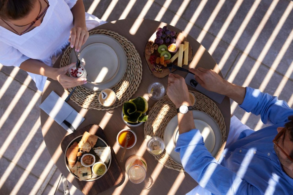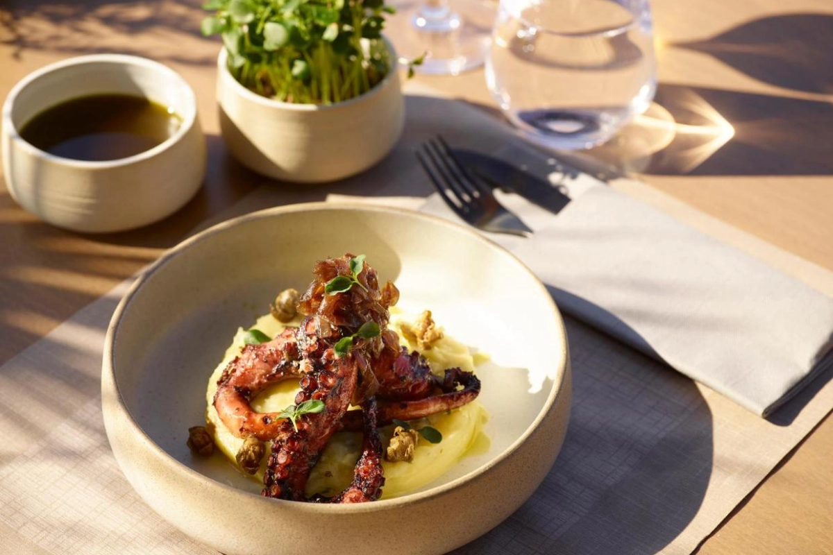 Dining at Matter Restaurant delights with a buffet of Cretan and international dishes, from local yogurt with honey to sharp Xinomizithra cheese, served with sea views. The 35° Cretan À La Carte Restaurant reimagines traditional recipes with gourmet flair, using fresh, organic produce to craft dishes like herb-infused lamb.