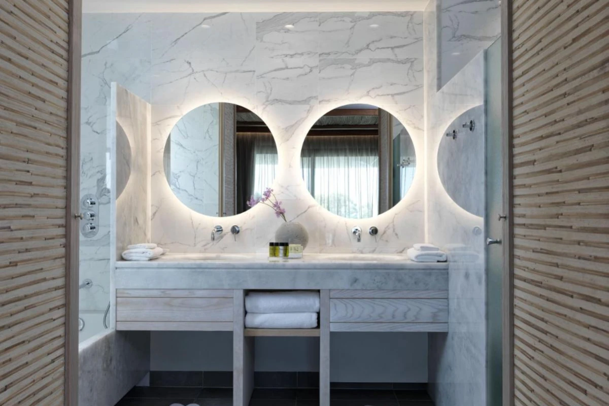 The 355 exquisitely styled rooms and suites pulse with modern flair, featuring air conditioning, flat-screen televisions, safety deposit boxes, hairdryers, desks, and private bathrooms with premium toiletries. Select accommodations open to balconies or terraces with breathtaking sea or pool views, crafting a serene retreat.