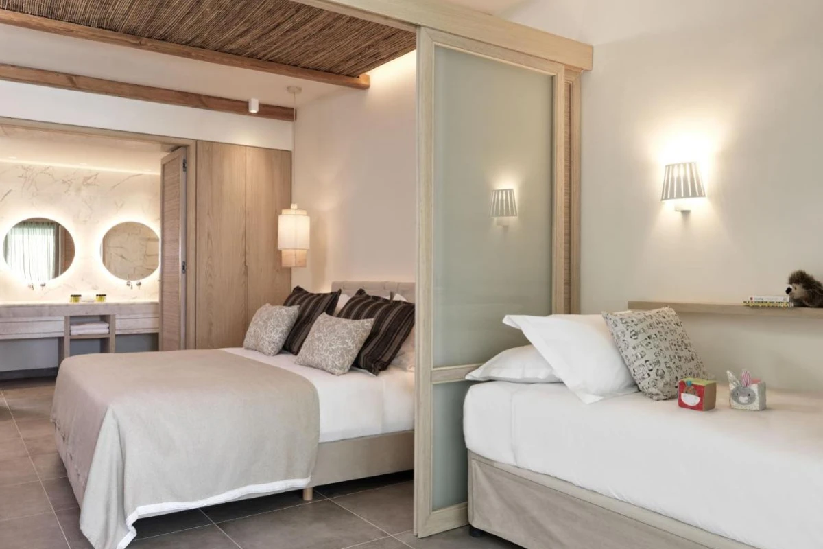 Dining at the main restaurant captivates with a lavish buffet of global and Greek flavours, from fresh seafood to local cheeses. Two à la carte venues weave Italian and Asian culinary magic, offering dishes like handmade pastas and spice-infused specialties, with vegetarian, dairy-free, and vegan options available.