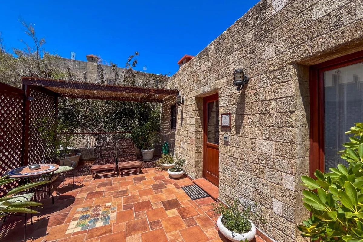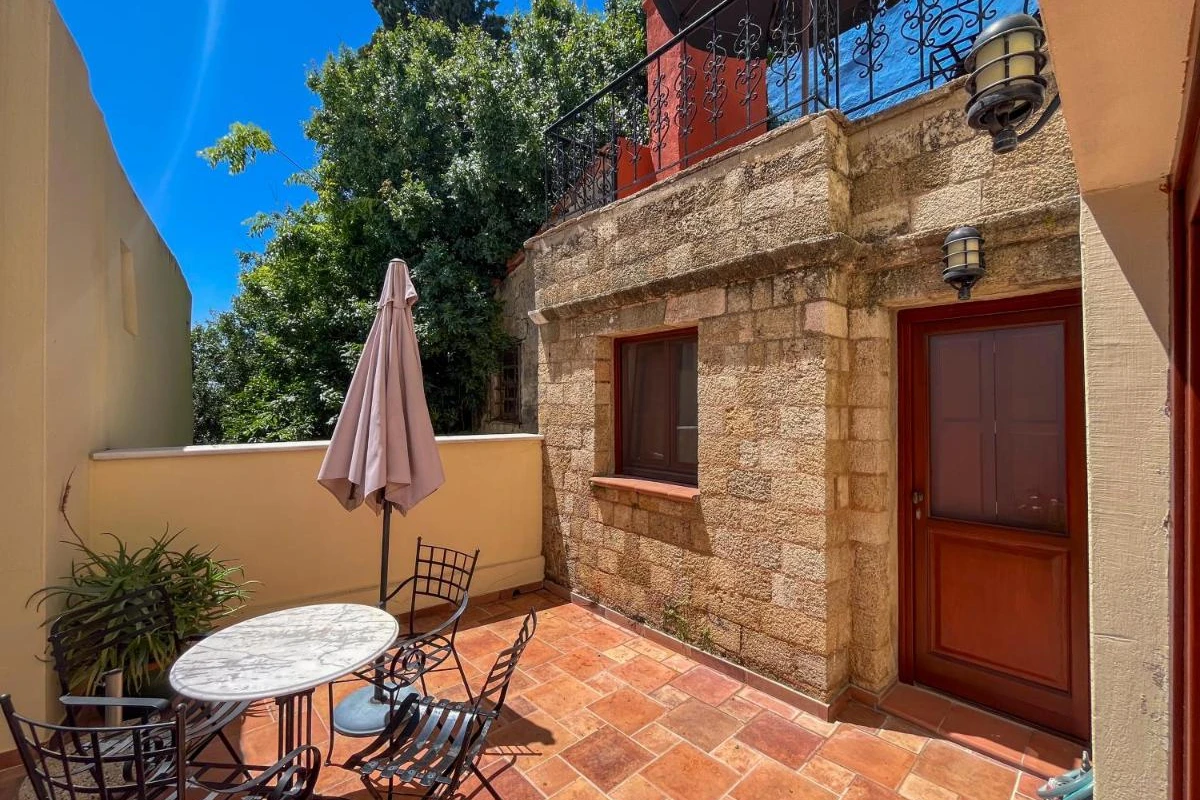 The six unique suites, villa, and deluxe room feature bespoke designs with air conditioning, satellite flat-screen televisions, minibars, and opulent bathrooms with spa baths, plush toiletries, and hairdryers. Each opens to a private balcony showcasing views of the medieval courtyard, bustling port, or ancient cityscape, steeped in Rhodes' storied allure.