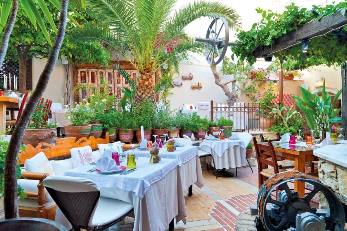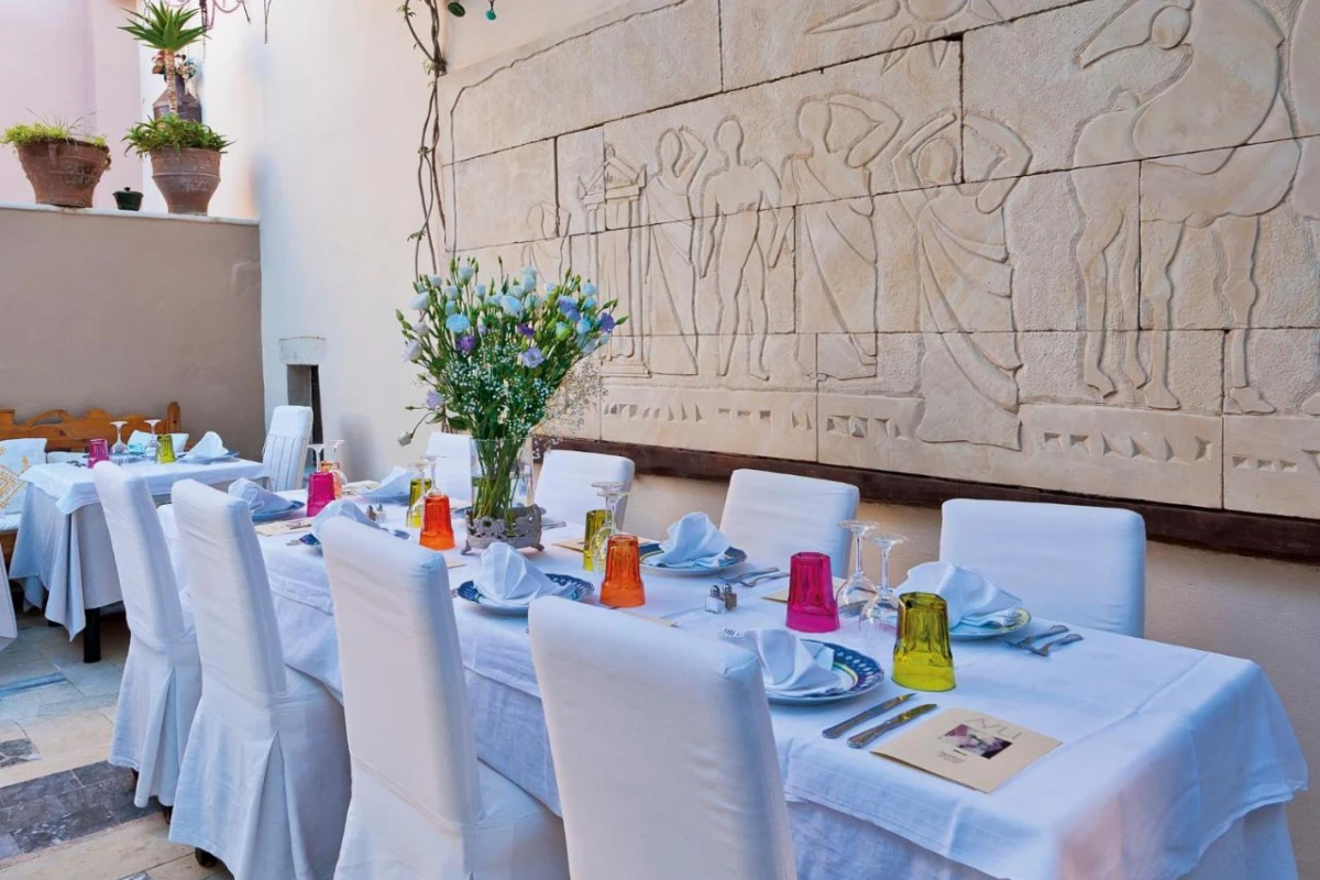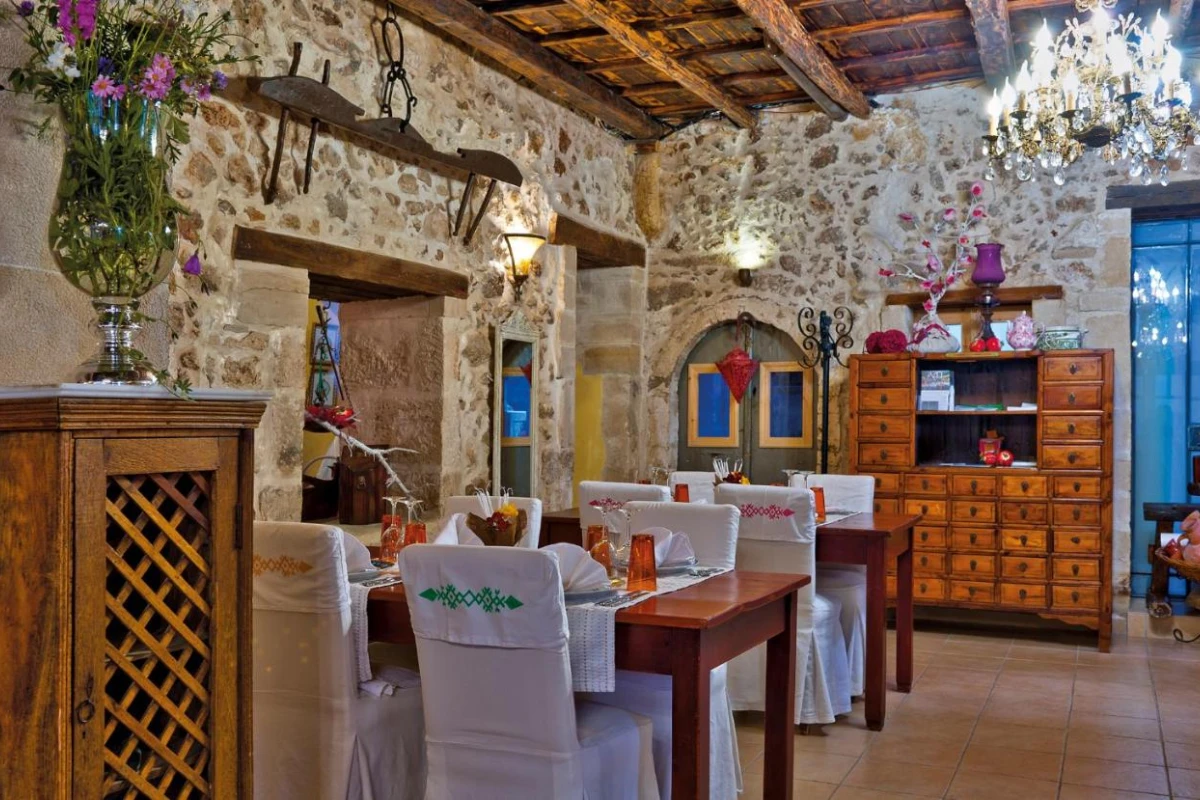 Dining at the award-winning restaurant showcases vibrant Cretan and Mediterranean dishes crafted from fresh local ingredients, served in a stylish indoor setting or the idyllic garden courtyard. A sumptuous Greek breakfast, inspired by the Cretan diet, features homemade specialties and local produce.