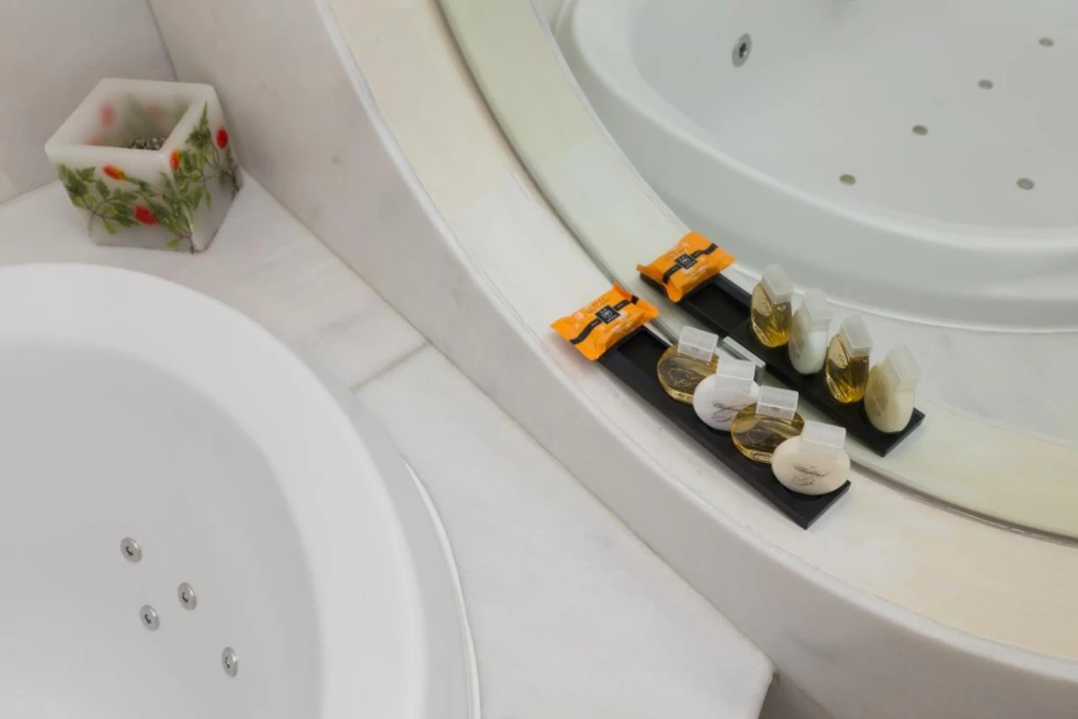 The Fusion Enoteca wine bar tempts with 460 global and local labels paired with delectable bites, while the rooftop terrace with a jacuzzi offers stunning views. Bespoke concierge services arrange cooking classes, wine tastings, and guided tours, complemented by a serene courtyard with a whispering fountain and access to a nearby fitness centre.