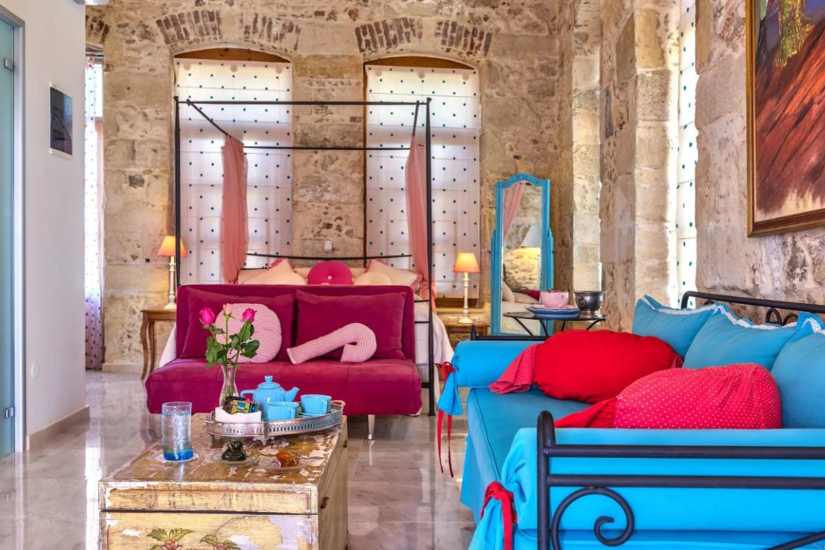 Avli Lounge Apartments, a five-star boutique gem in Rethymno's Old Town, Crete, Greece, resides in a restored 16th-century Venetian mansion, blending historic allure with modern sophistication near the Grand Masters' Palace.