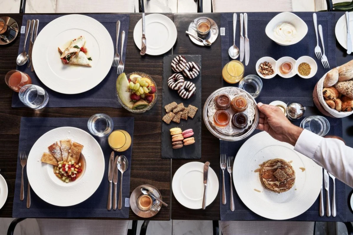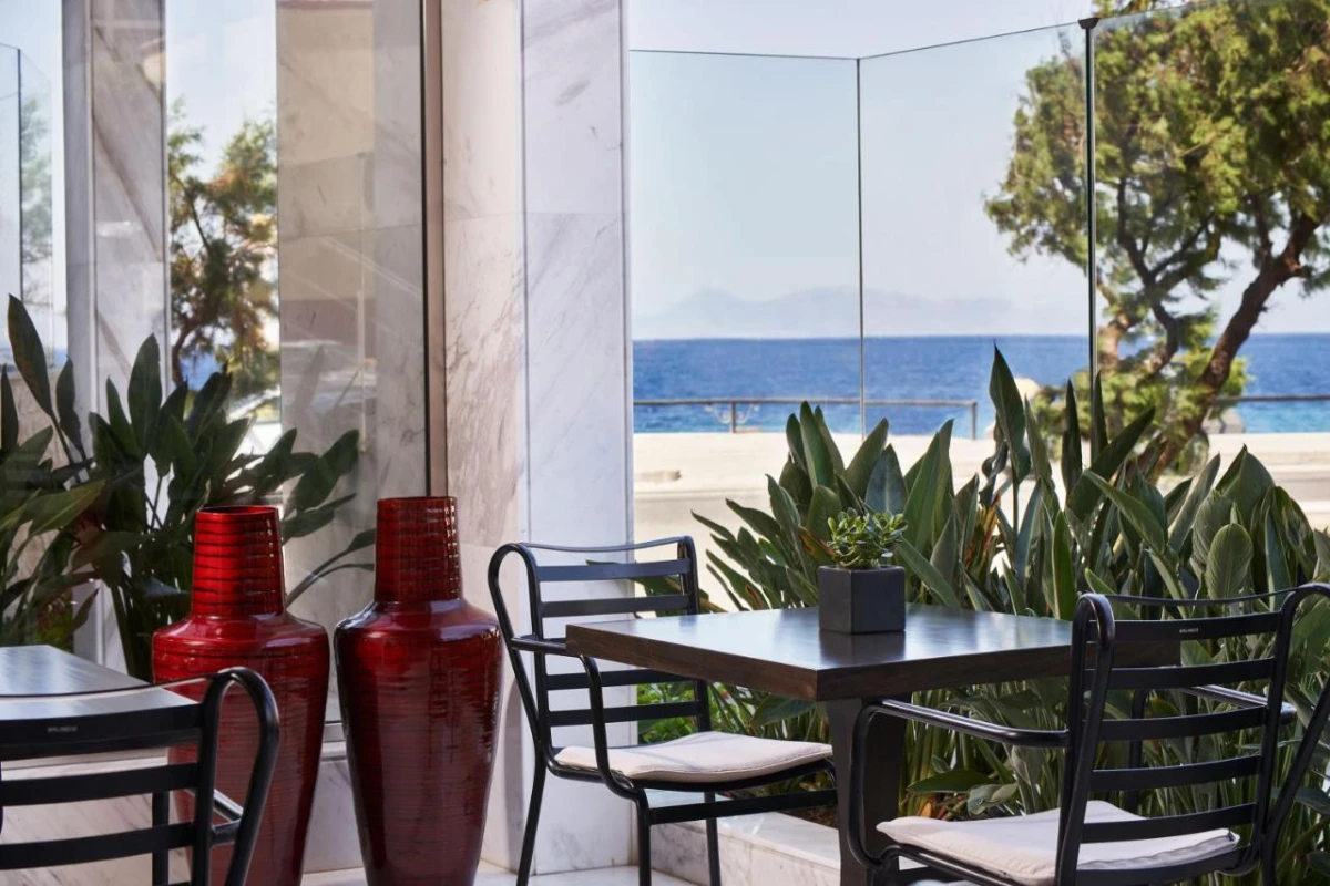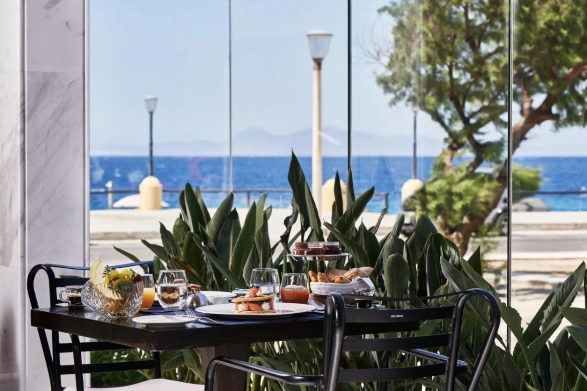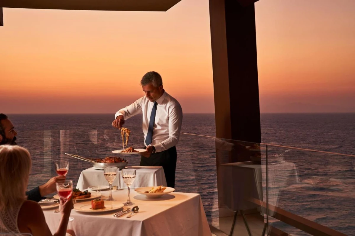 Dining at Bellevue Restaurant, led by an acclaimed chef, showcases Greek, Mediterranean, and Italian cuisine crafted from the finest local ingredients, with breakfast, lunch, and dinner options including gluten-free, vegan, and vegetarian dishes. Guests can savour meals on private balconies or in the elegant dining area.