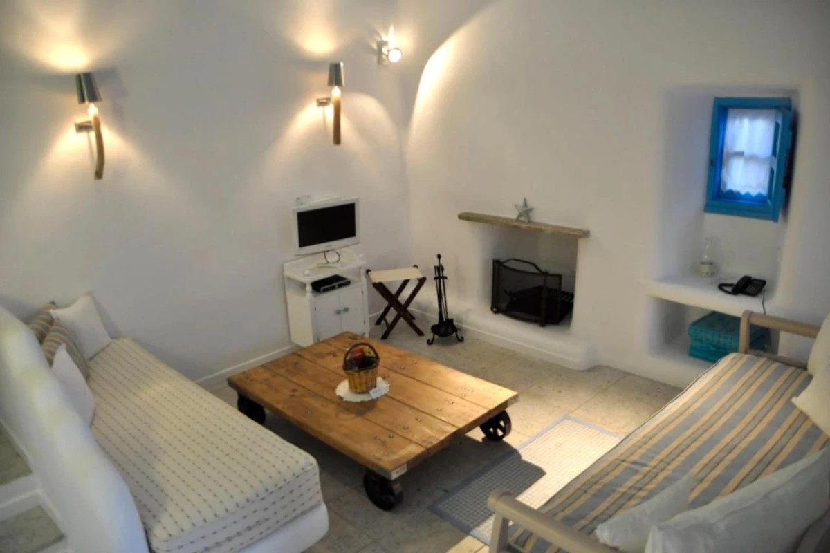 Dining is a flexible delight with fully equipped kitchens for self-catering, allowing guests to prepare meals using fresh local produce from nearby village tavernas and stores, brimming with Naxian cheeses, fruits, and seafood. The surrounding authentic tavernas offer traditional Cycladic dishes for those seeking local flavours.