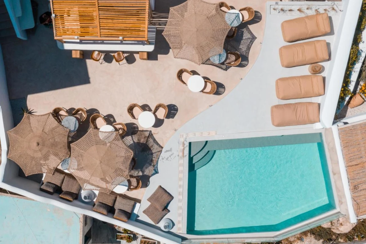 Dining at the hotel is a celebration of Cycladic flavours at the Boheme Restaurant, where Mediterranean dishes like grilled octopus with fava bean puree and thyme-roasted lamb are crafted from fresh, local ingredients. An extensive selection of Greek and international wines elevates intimate dinners or special occasions, enjoyed in a setting overlooking the village's charm. The All Day Pool Deli Bar serves refreshing cocktails and light bites, from citrus-dressed salads to artisanal cheeses, perfect for savouring by the tranquil outdoor pool. Surrounded by lush gardens and sun loungers, the pool area invites relaxation, while the rejuvenating spa offers tailored massages and botanical treatments. A modern fitness centre caters to wellness-focused guests, ensuring a balanced retreat.