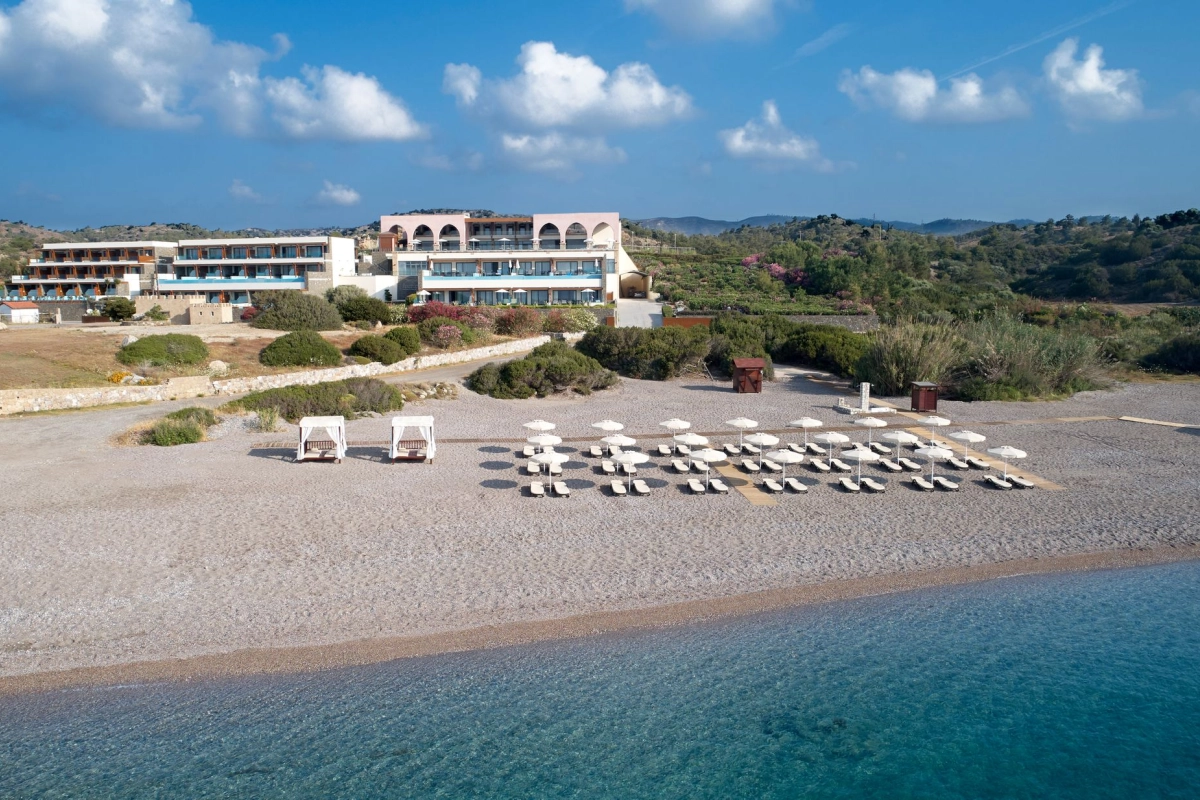 Boutique 5 Hotel & Spa, an award-winning adults-only retreat in Kiotari, Rhodes, blends minimalist elegance with warm hospitality, offering a luxurious escape overlooking the crystalline Mediterranean Sea.