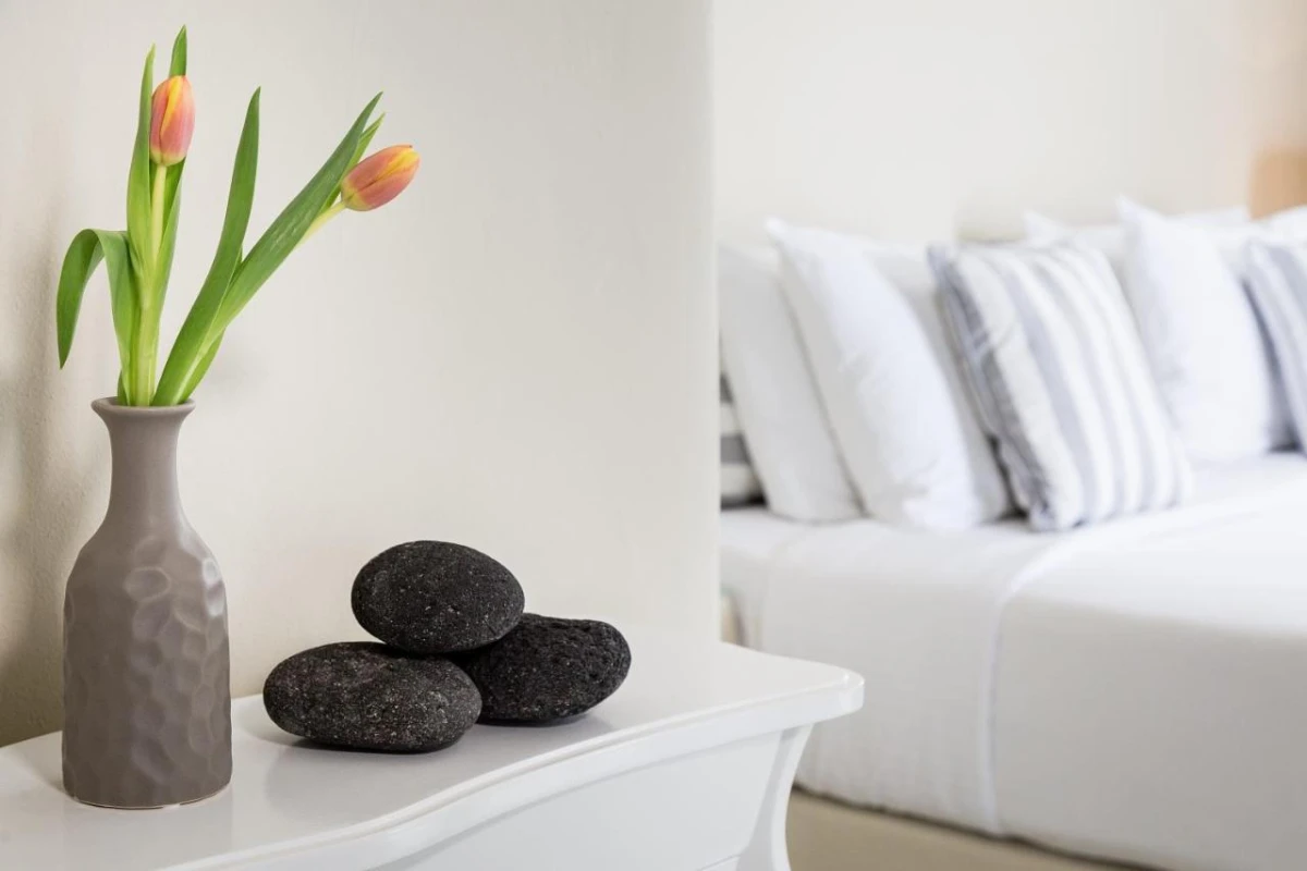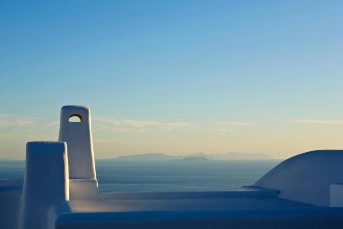Each of the spacious suites embraces minimalist elegance, adorned in soothing white and grey tones that reflect Santorini's iconic aesthetic. Featuring private terraces with plunge pools, grand bathrooms with deep bathtubs, ample closets, and supremely comfortable beds, the suites create a tranquil retreat. Thoughtful touches like LCD TVs, minibars, and cozy seating areas enhance the modern comfort, while expansive windows frame breathtaking views of the Aegean Sea and the medieval castle of Pyrgos village, capturing both vibrant sunrises and mesmerizing sunsets.