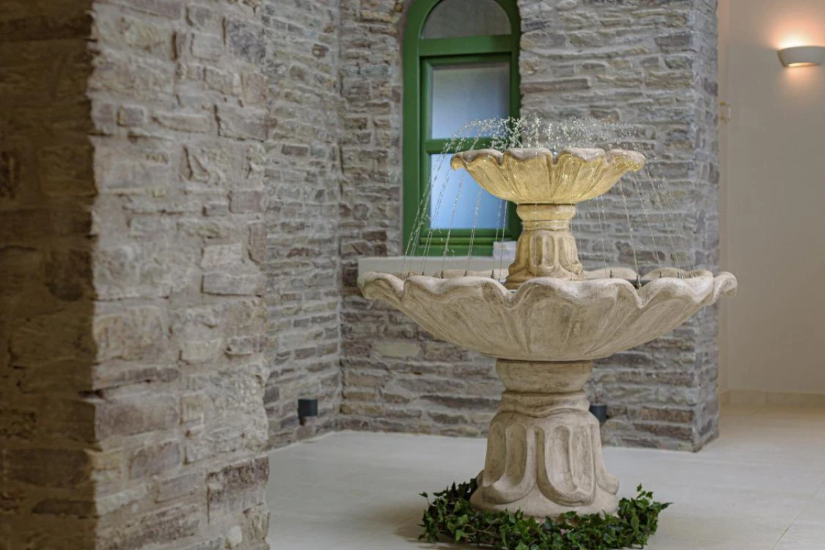 Dining at Casa Di Fiori is a flexible, intimate affair, with fully equipped kitchen facilities in each suite allowing guests to craft their own meals using fresh, local ingredients. For those preferring to unwind, the modern stone lobby with its striking glass ceiling serves as a tranquil space to enjoy a morning coffee or evening drink, surrounded by the property's enchanting gardens. The sprawling grounds, alive with colorful flowers, invite leisurely strolls, while the serene ambiance fosters a fairytale-like escape, perfect for quiet reflection or romantic moments.