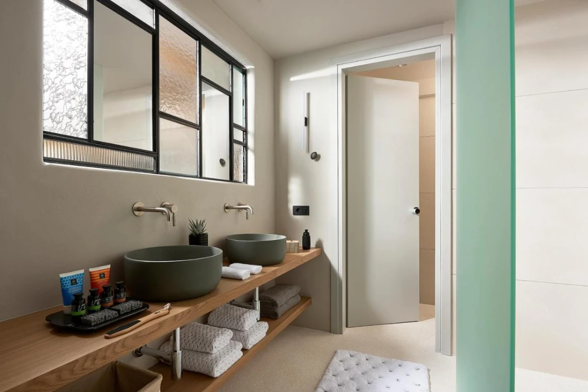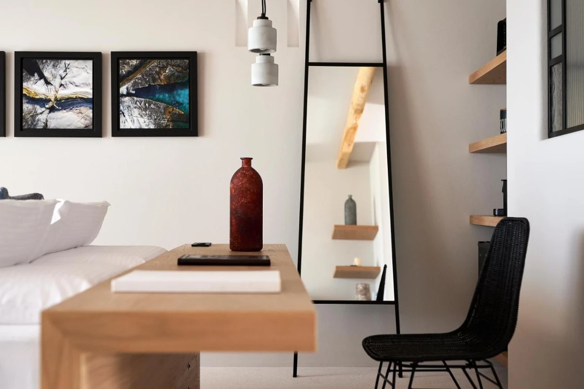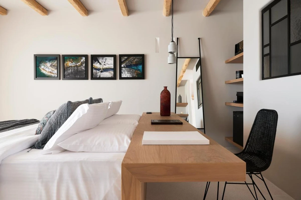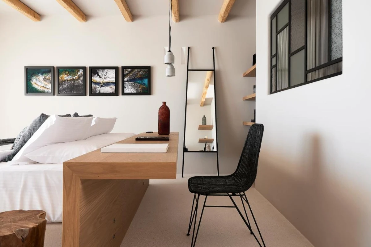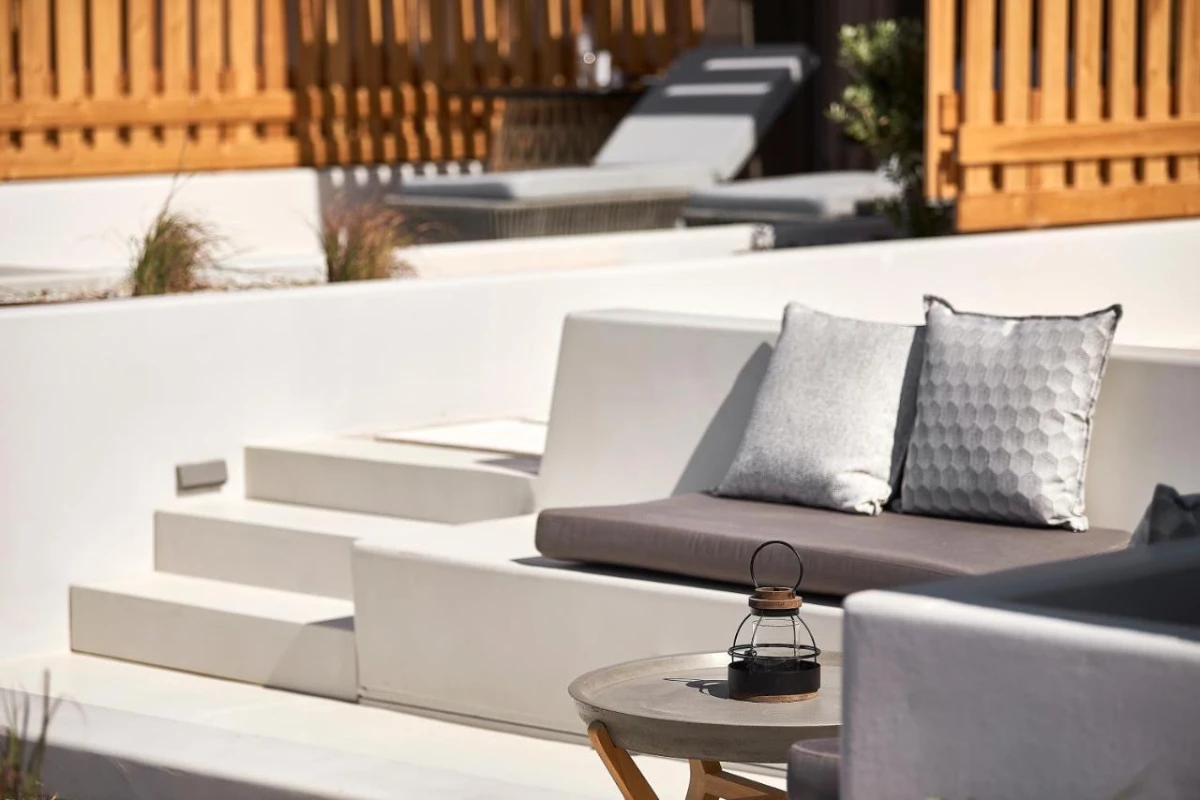 Each newly crafted suite is a haven of modern elegance, featuring private balconies with personal plunge pools that frame panoramic ocean vistas. Air-conditioned interiors are appointed with coffee machines, safety deposit boxes, and pristine bathrooms with invigorating showers and complimentary toiletries. The minimalist design, inspired by Milos' volcanic landscape, blends sleek furnishings with calming tones, creating a tranquil space that invites relaxation and quiet contemplation.