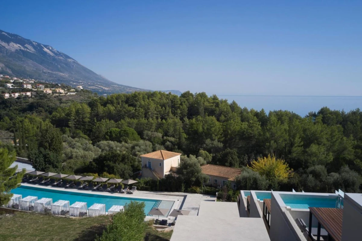 Celestial All Suites, a luxurious five-star boutique retreat perched on a hillside in Mousata Village, Kefalonia, captivates with its authentic architecture and sweeping views of the Ionian Sea, offering an adults-only haven of refined tranquility.