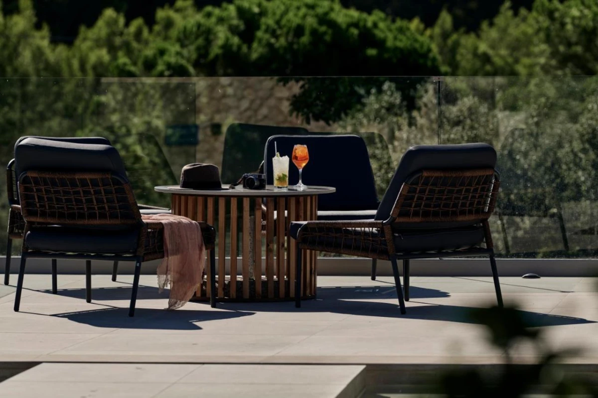 The 23 uniquely styled suites blend contemporary elegance with island charm, each featuring air-conditioned comfort, flat-screen TVs, coffee machines, fridges, wardrobes, and pristine bathrooms with invigorating showers. Private balconies, some showcasing serene sea vistas, invite moments of quiet reflection, while thoughtful touches like safety deposit boxes and curated furnishings create an intimate, sophisticated escape tailored for relaxation.