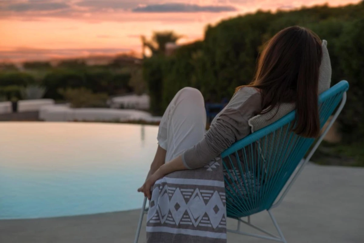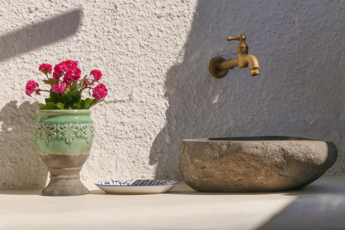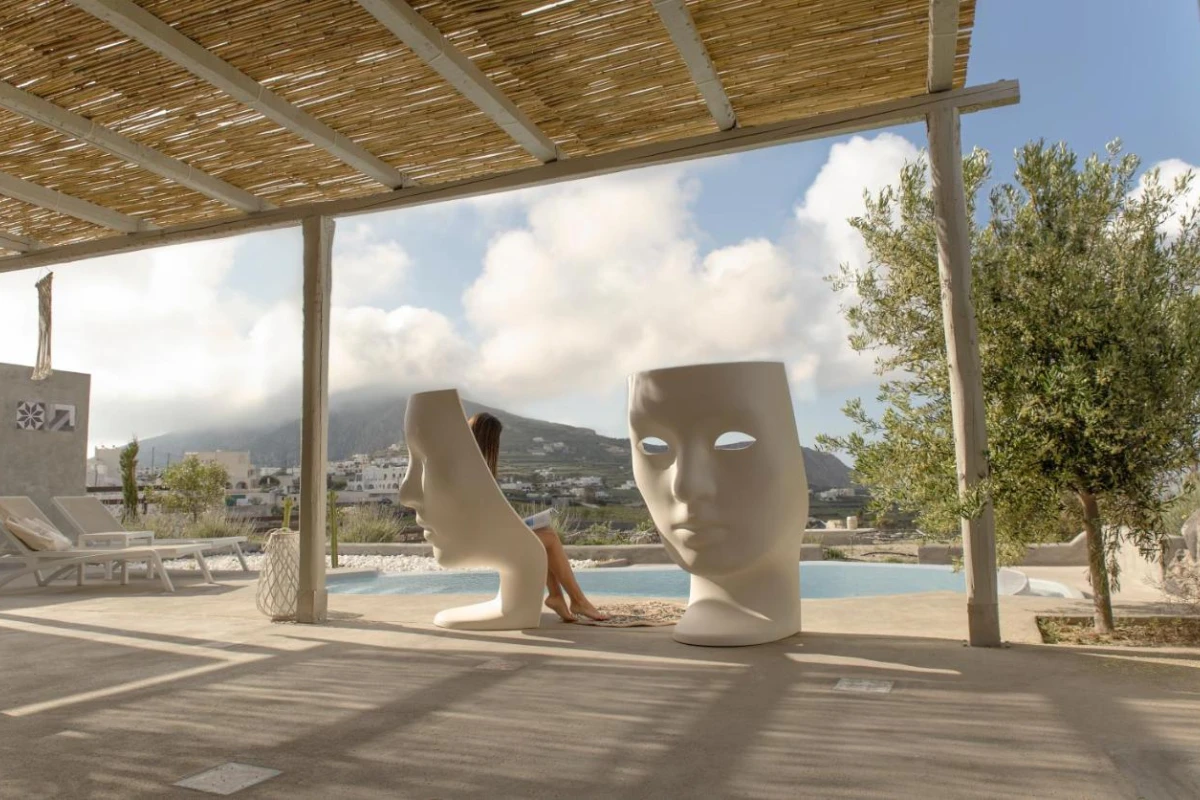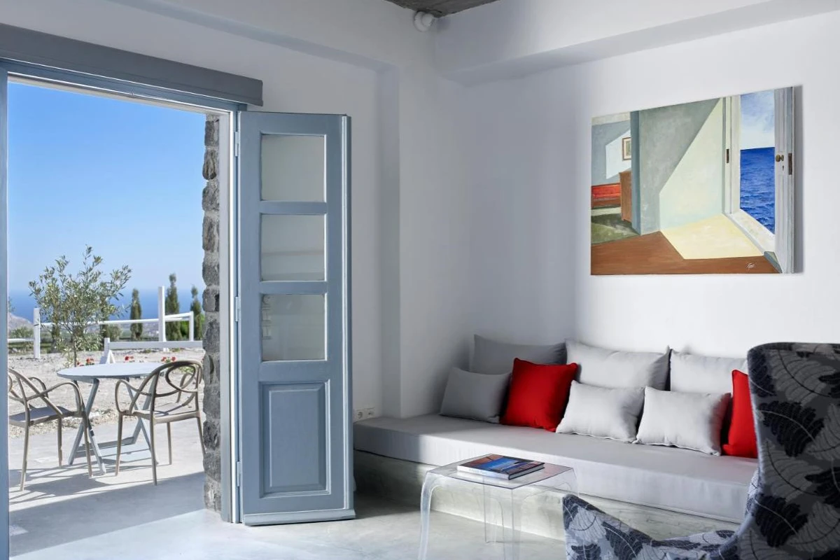 Christou Estate Santorini, an exquisite adults-only boutique retreat in Pyrgos Kallistis, Santorini, nestles within a 5,500-square-metre oasis of olive trees, cypresses, pomegranates, herbs, and organic vegetable gardens, offering a serene escape steeped in Cycladic charm.