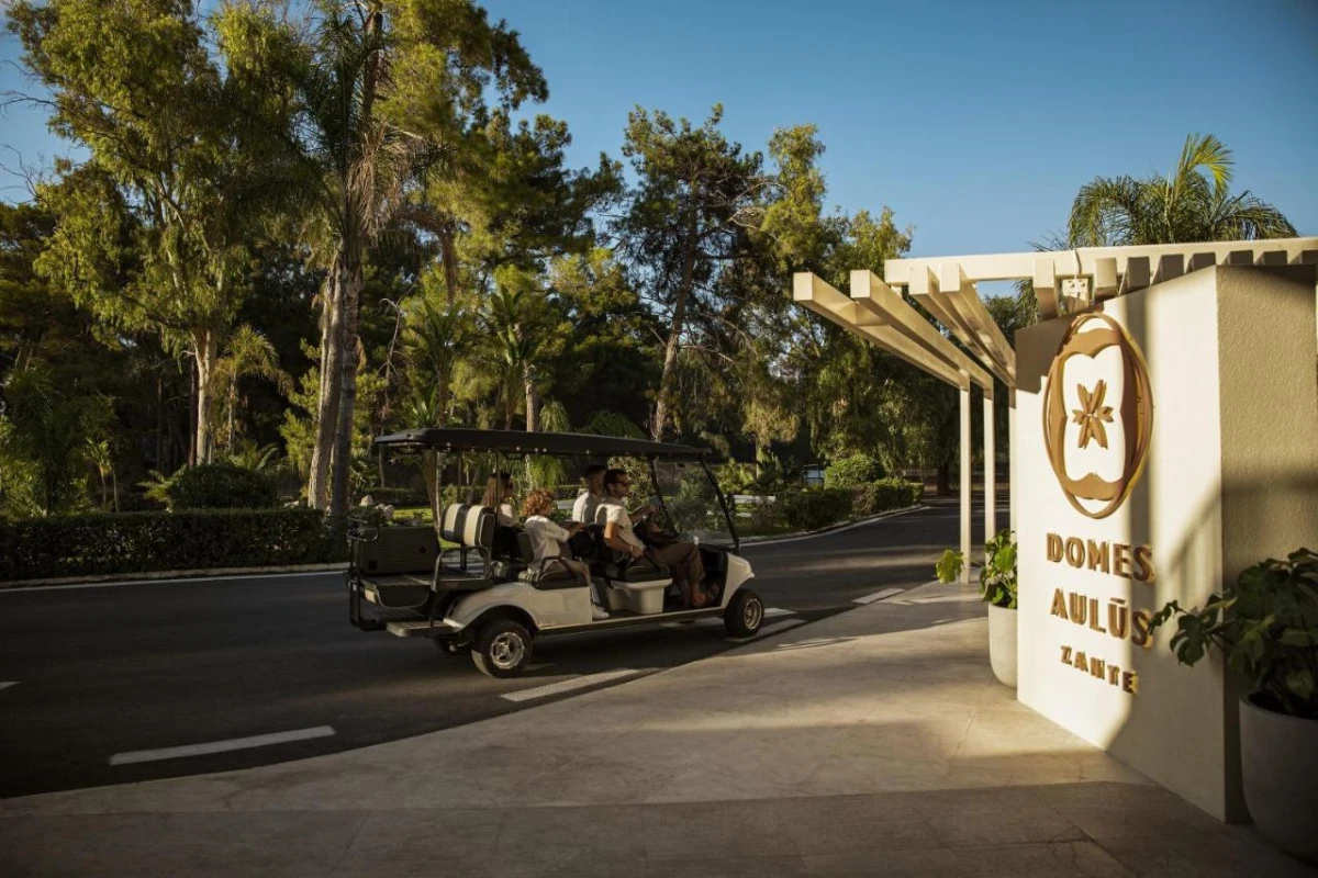 Domes Aulūs Zante, a distinguished five-star all-inclusive resort in Laganas, Zakynthos, part of the Autograph Collection, captivates with its lush hillside setting and breathtaking Ionian Sea vistas.
