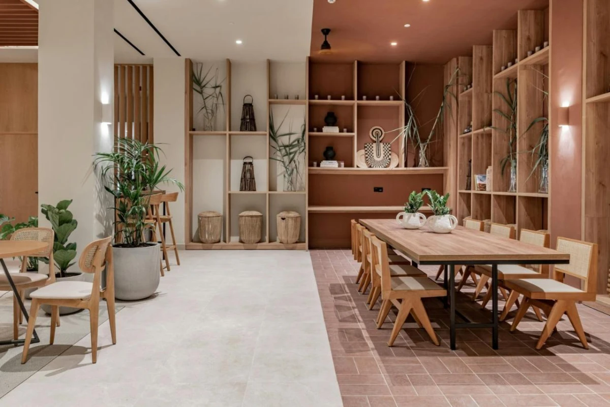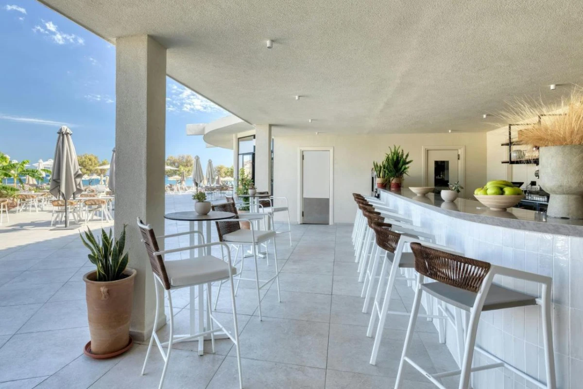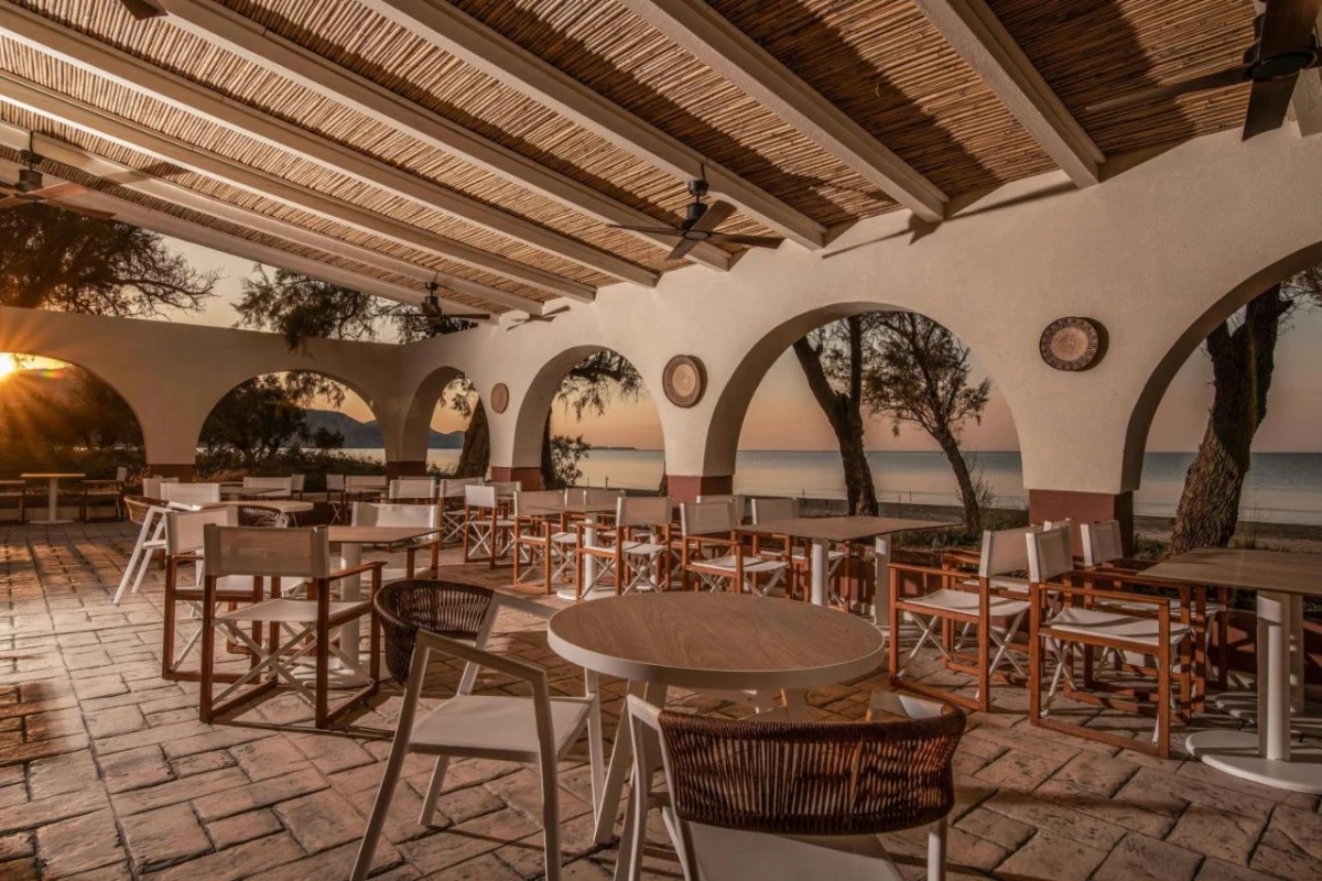 Dining at Domes Aulūs Zante is a culinary celebration. Monachus, the main buffet restaurant, offers a vast array of breakfast, lunch, and dinner options with indoor and outdoor terrace seating. Caretta, a beachside eatery, serves light lunches, snacks, and drinks under the Mediterranean sun. Meze, awarded Best Greek Hotel Restaurant in 2018, crafts traditional Greek meze with locally sourced ingredients, inspired by Thessaloniki's food markets. Lianolia delivers contemporary international cuisine with beachfront refinement. The Oikia Main Bar pours premium spirits and signature cocktails, Caretta Bar offers laid-back adult-only snacks and drinks, and Lianolia Pool Bar provides a relaxed setting for poolside refreshments. A shimmering outdoor pool, fringed by sun-drenched loungers, pairs with the Domes Soma Spa, featuring a sauna, steam room, indoor pool, and bespoke massage and beauty treatments. A state-of-the-art fitness centre, table tennis, karaoke, and cycling via bike or car hire ensure vibrant leisure, with curated excursions to explore Zakynthos' cultural gems.