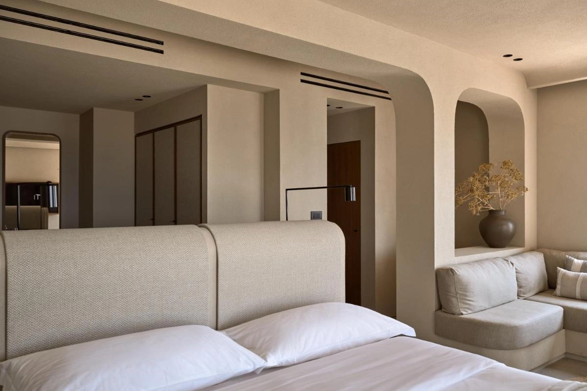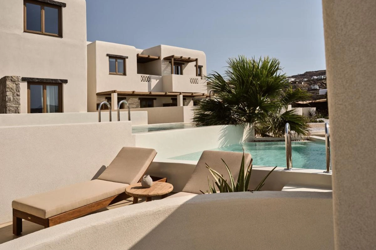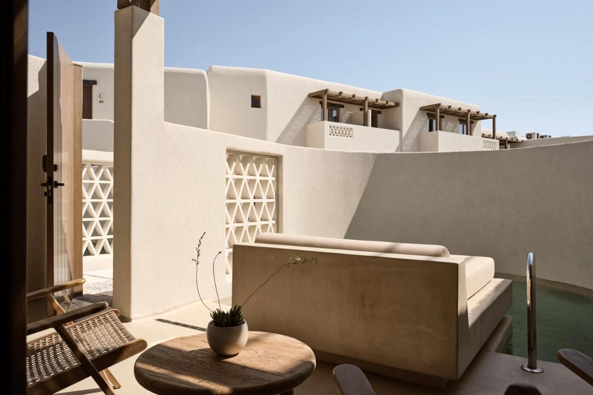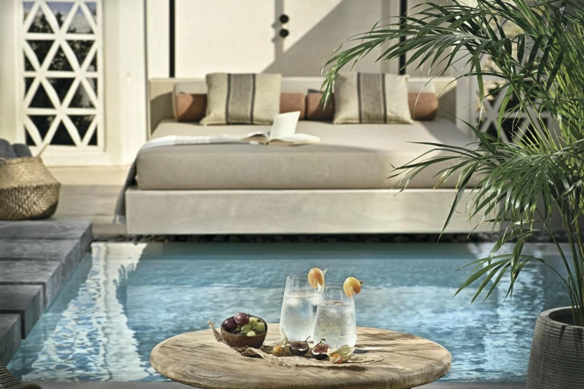 Domes Noruz Mykonos, an exquisite five-star adults-only boutique retreat in Agios Stefanos, Mykonos, radiates sultry elegance amidst the island's vibrant energy.