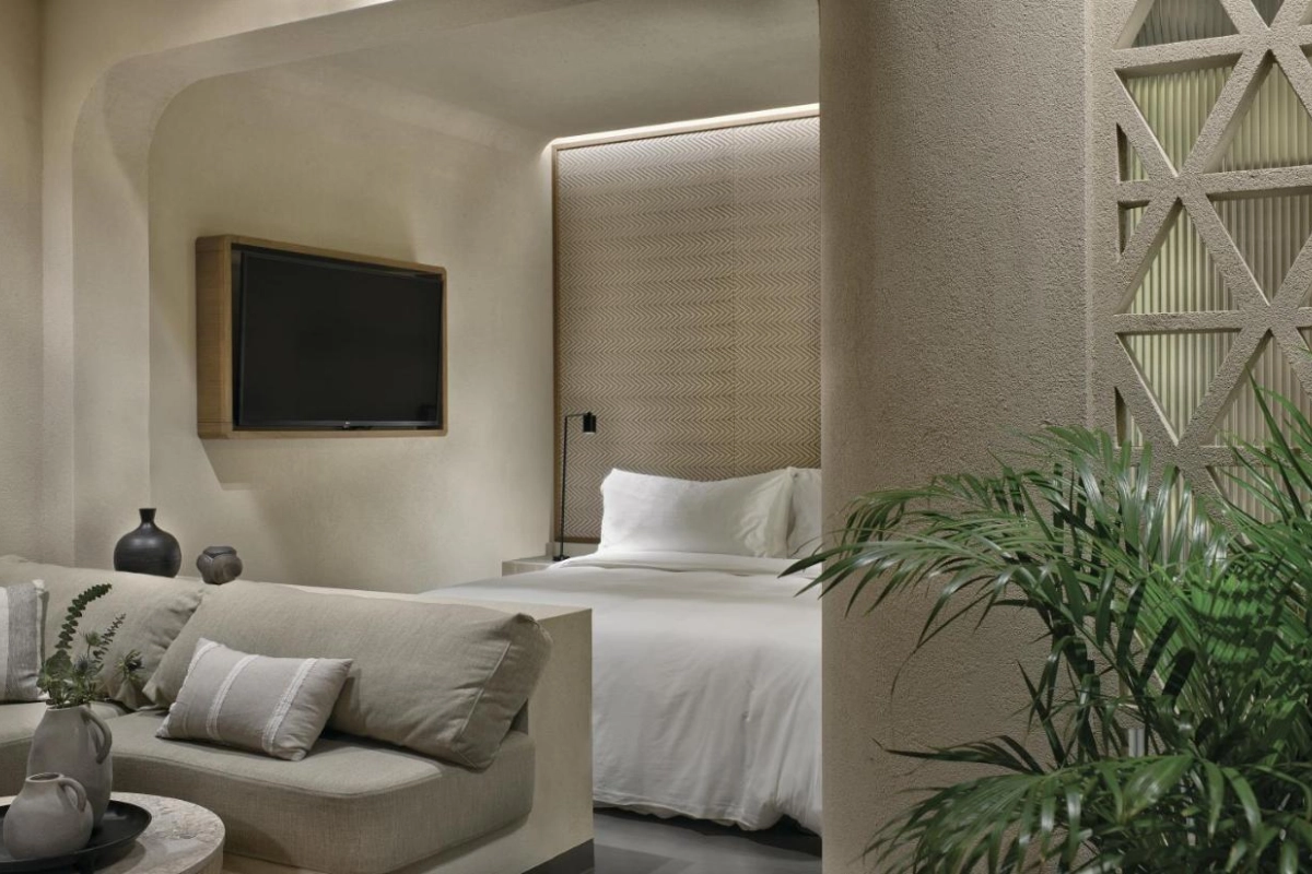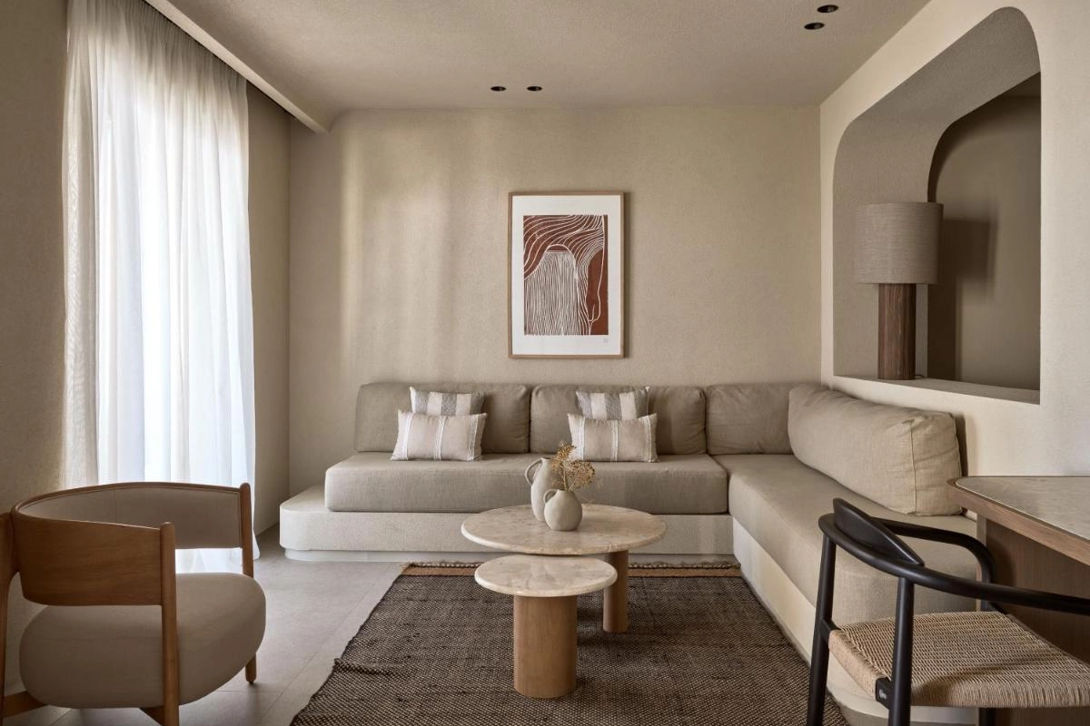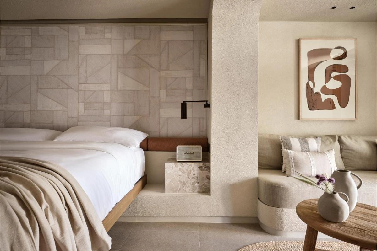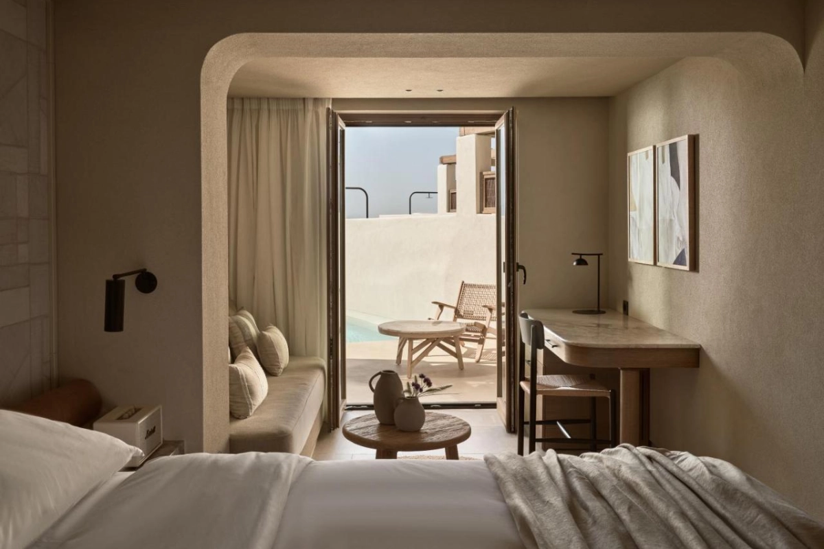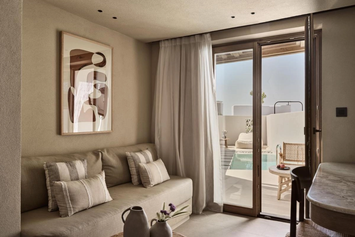 Domes Noruz Mykonos, an exquisite five-star adults-only boutique retreat in Agios Stefanos, Mykonos, radiates sultry elegance amidst the island's vibrant energy.