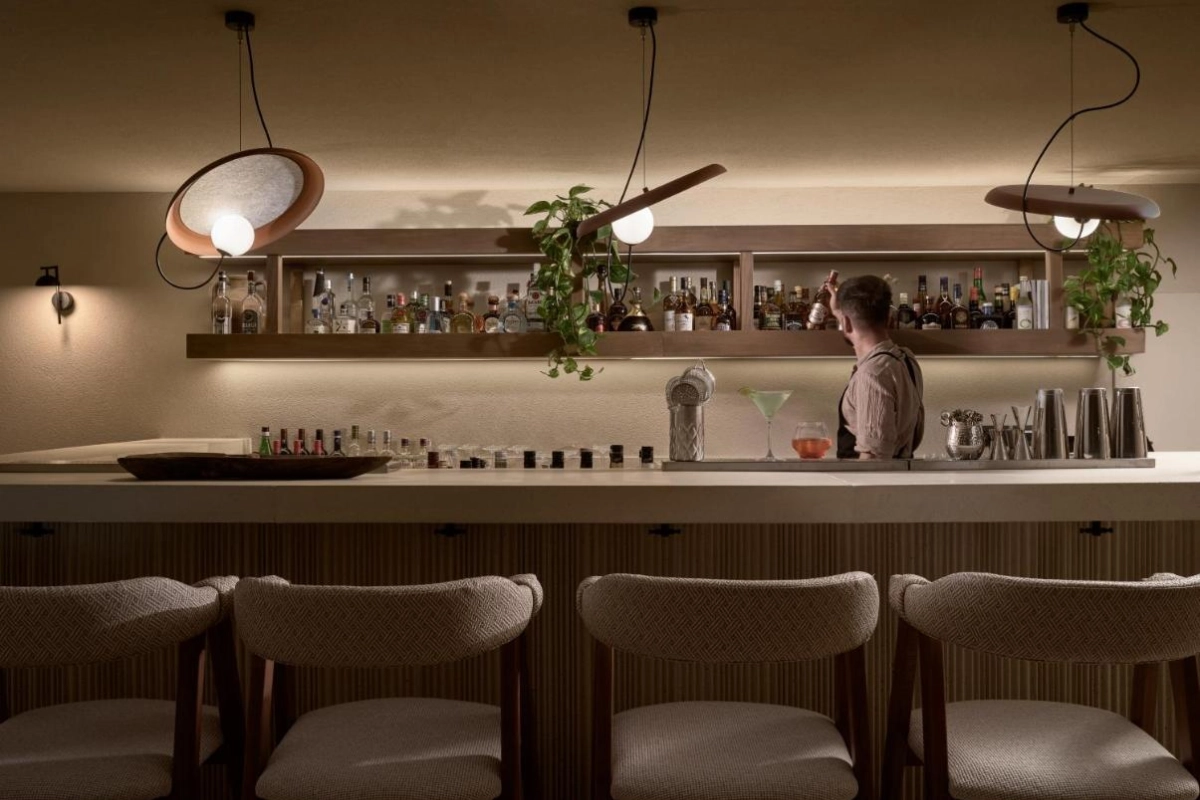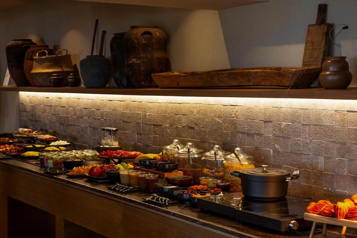 Dining at Domes Noruz Mykonos is a gastronomic delight. Vatanee presents a menu of communal small plates showcasing authentic sea and land flavours, from cured cod ceviche to seabass and scallop tartare, served in a vibrant setting. The Raw Gastro Cocktail and Champagne Bar exudes sophistication, pairing eclectic raw gastro finger foods with cocktails crafted by skilled mixologists. N Bar elevates evenings with signature cocktails, rare local vintages, and premium champagnes under Byzantine-inspired decor. A lavish breakfast buffet, à la carte, or American-style is served daily. The vibrant pool, the heart of the resort, is framed by premium loungers, while the Soma Spa 'The Amuse' offers playful yet rejuvenating treatments like glow facials and body-melting massages using ELEMIS and Codage Paris products. A fitness centre, live music, DJ sets, and curated events like chef battles and fashion shows create a lively atmosphere, complemented by bespoke concierge services arranging wine tastings, culinary boat trips, or adventures to Delos and Tinos.