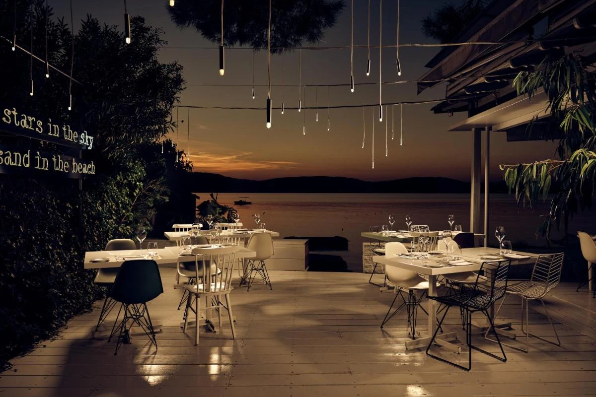 The 70 uniquely crafted rooms and suites feature COCO-MAT furnishings, merging natural materials like solid wood and Greek grey marble with designer touches by Arad, Starck, O'Ghery, and Castiglioni. Each air-conditioned space offers private balconies with sweeping views of the sea, pine forests, or lush gardens, alongside satellite TVs and minibars for refined comfort. The private white-sand beach invites leisurely days by crystal-clear waters, while a shimmering pool with eco-mattresses captures romantic sunset vistas. The spa and wellness centre curates bespoke treatments, and curated boat trips to secluded beaches or nearby islands spark exploration.