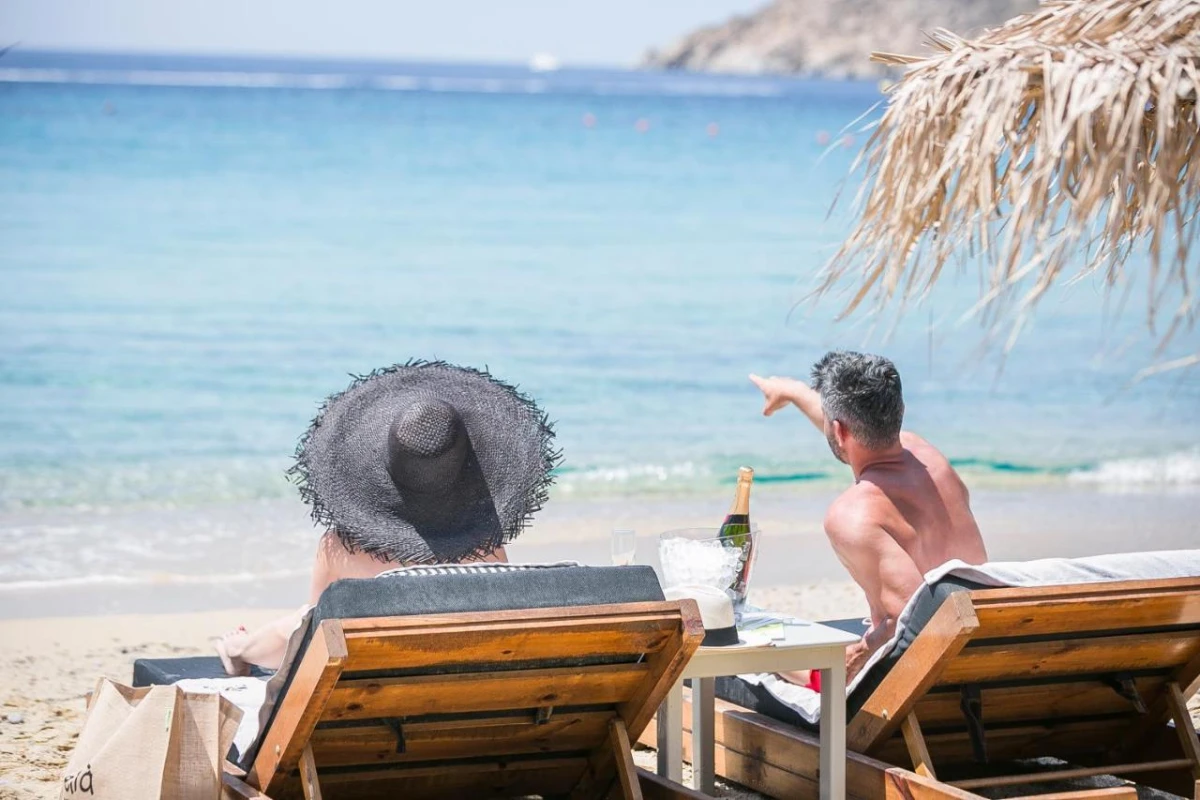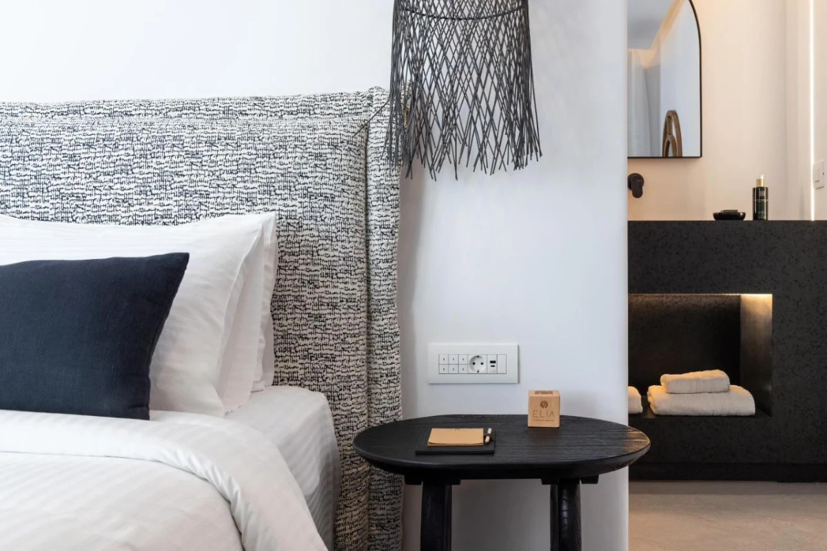 Elia Mykonos Resort, a sophisticated five-star retreat on Mykonos' serene Elia Beach, captures the essence of Cycladic minimalism with clean lines and soothing hues, offering a tranquil escape curated by the esteemed Stavrakopoulos family.