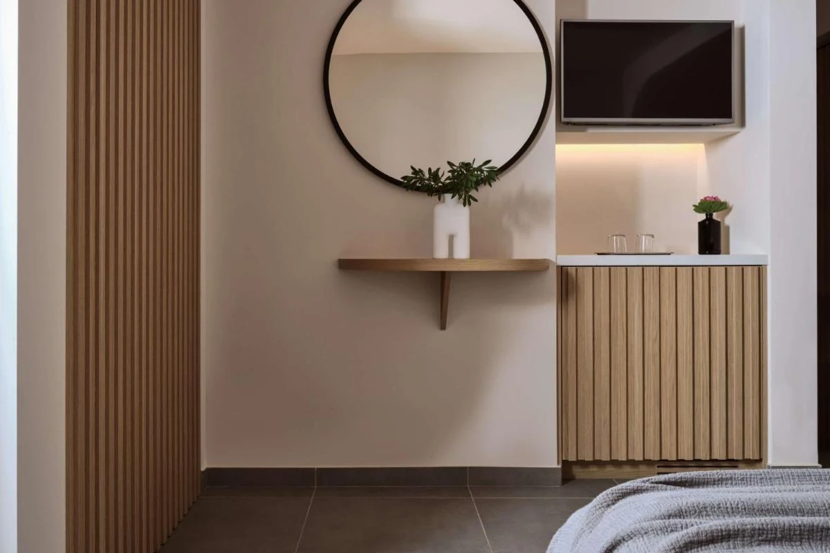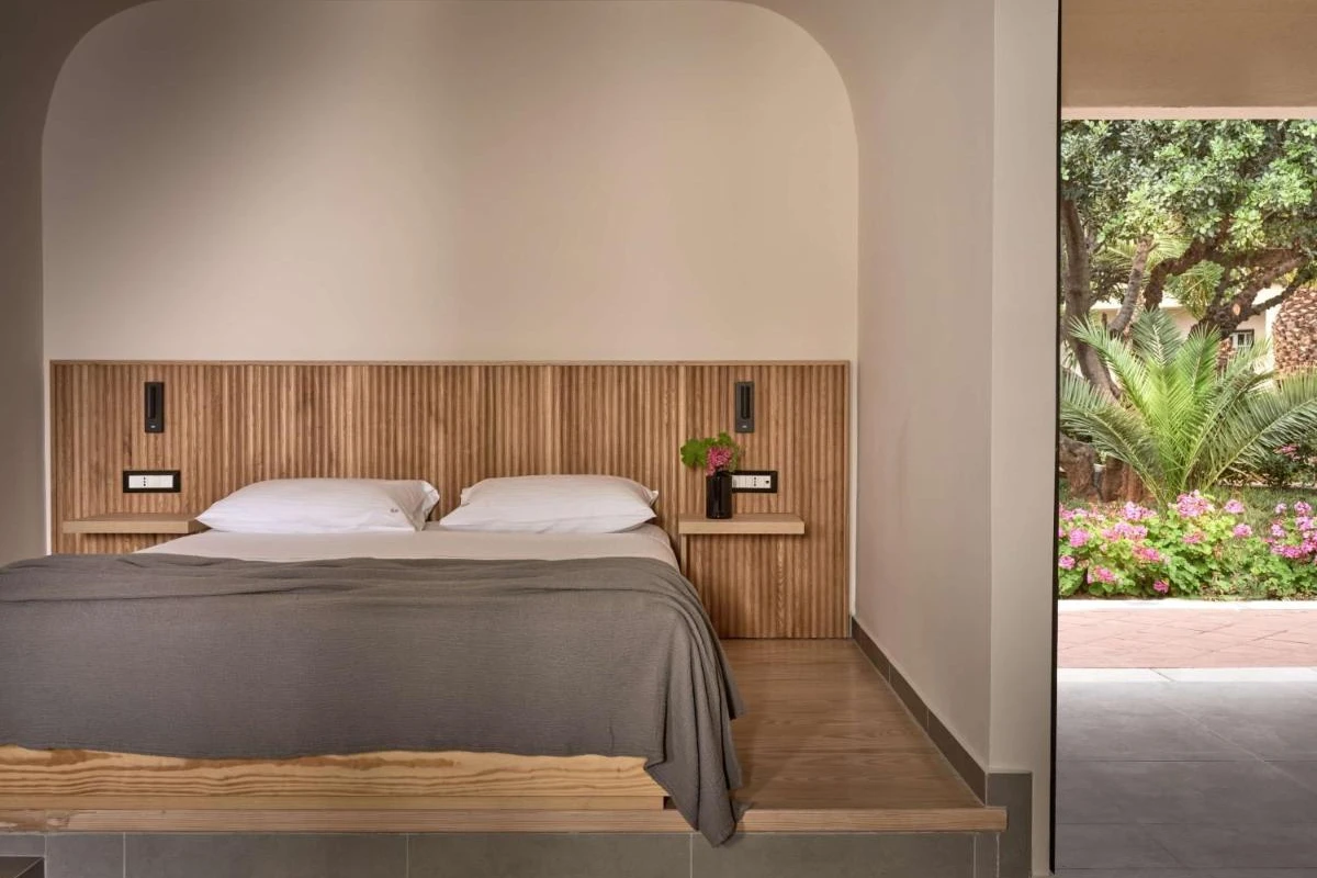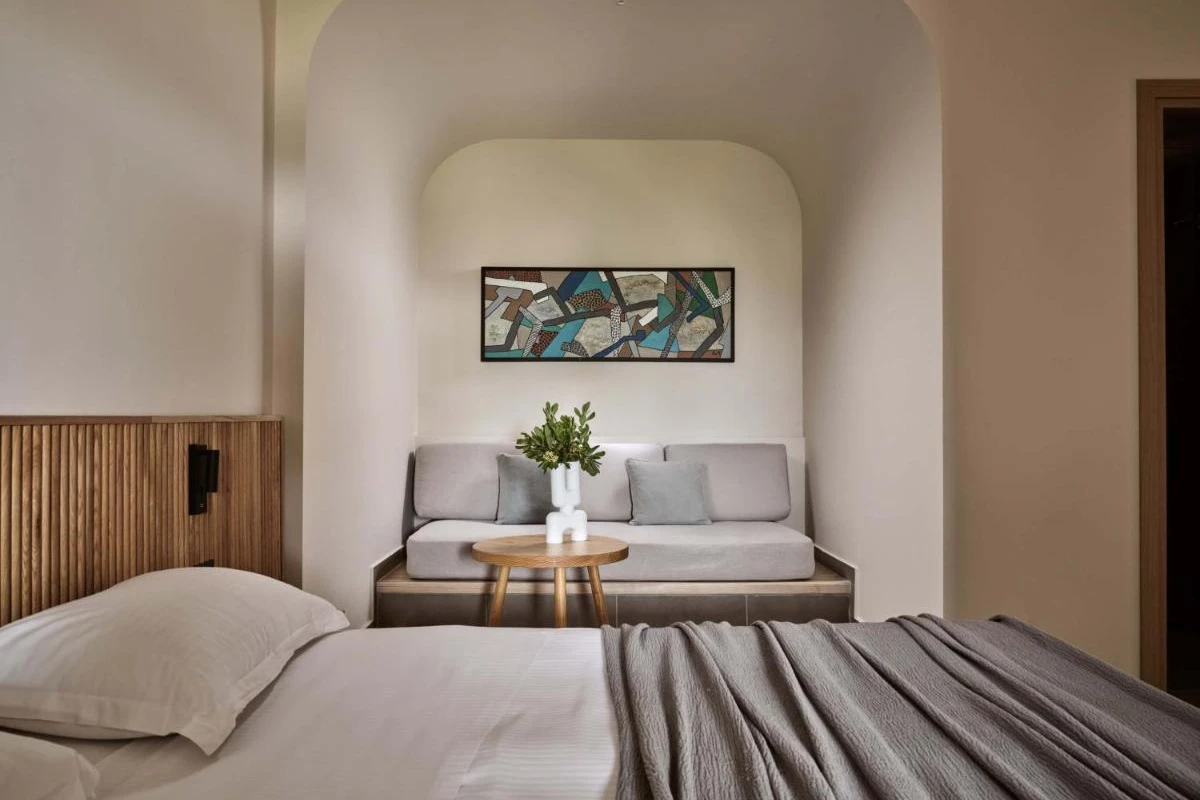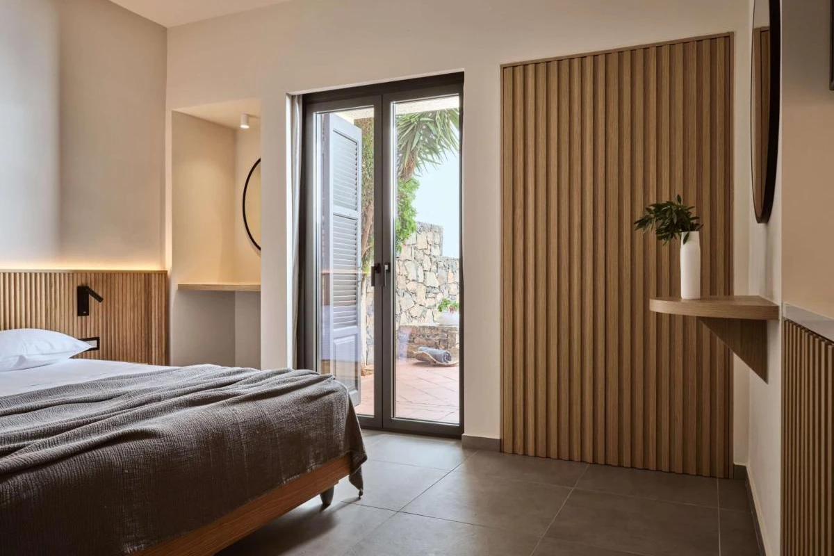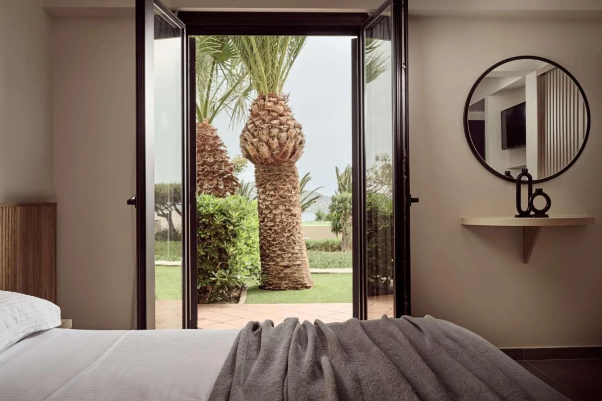 Elounda Palm Hotel, a family-run boutique retreat in Crete's Lasithi region, nestles amid over 150 palm trees, blending chic minimalism with captivating views of Elounda Bay and Spinalonga Island.
