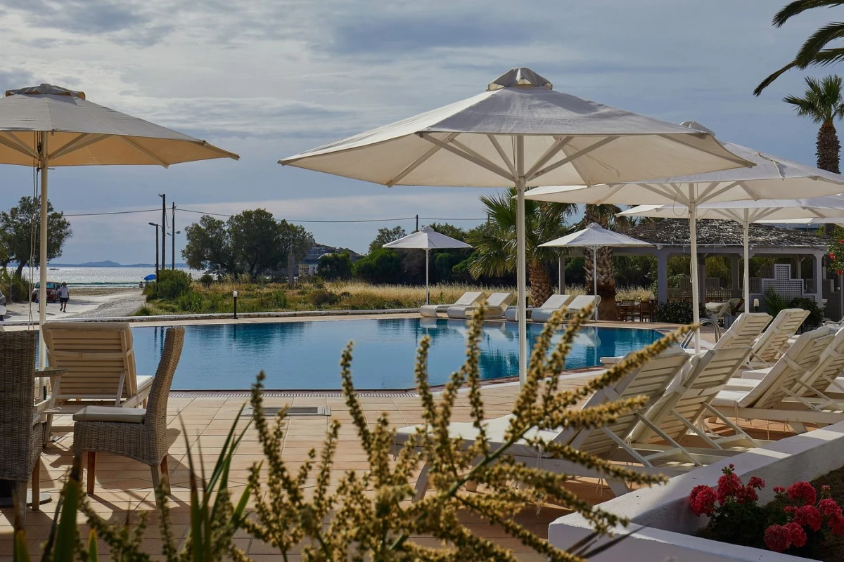 Dining at the hotel's restaurant captivates with Mediterranean cuisine, from grilled octopus to honey-drizzled loukoumades, paired with local Naxian wines. The bar serves refreshing cocktails, perfect for sipping by the seasonal outdoor pool under olive trees.
