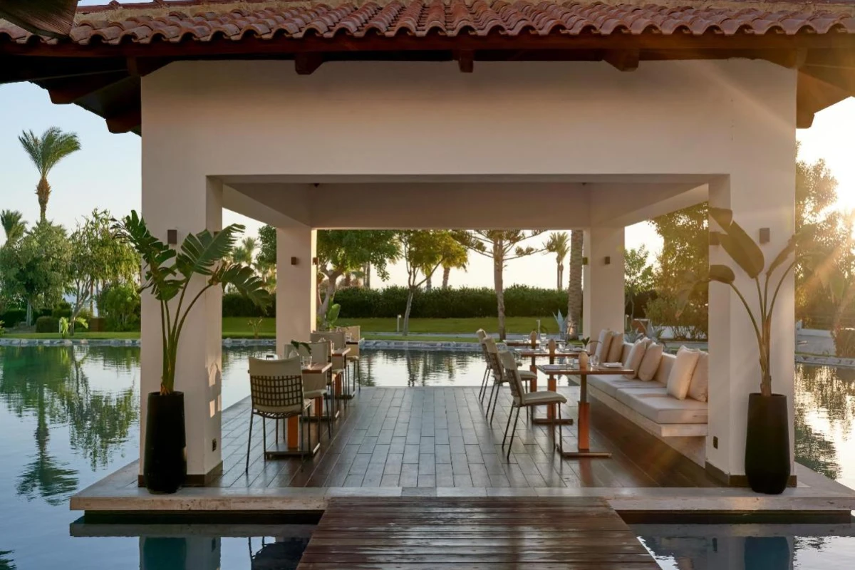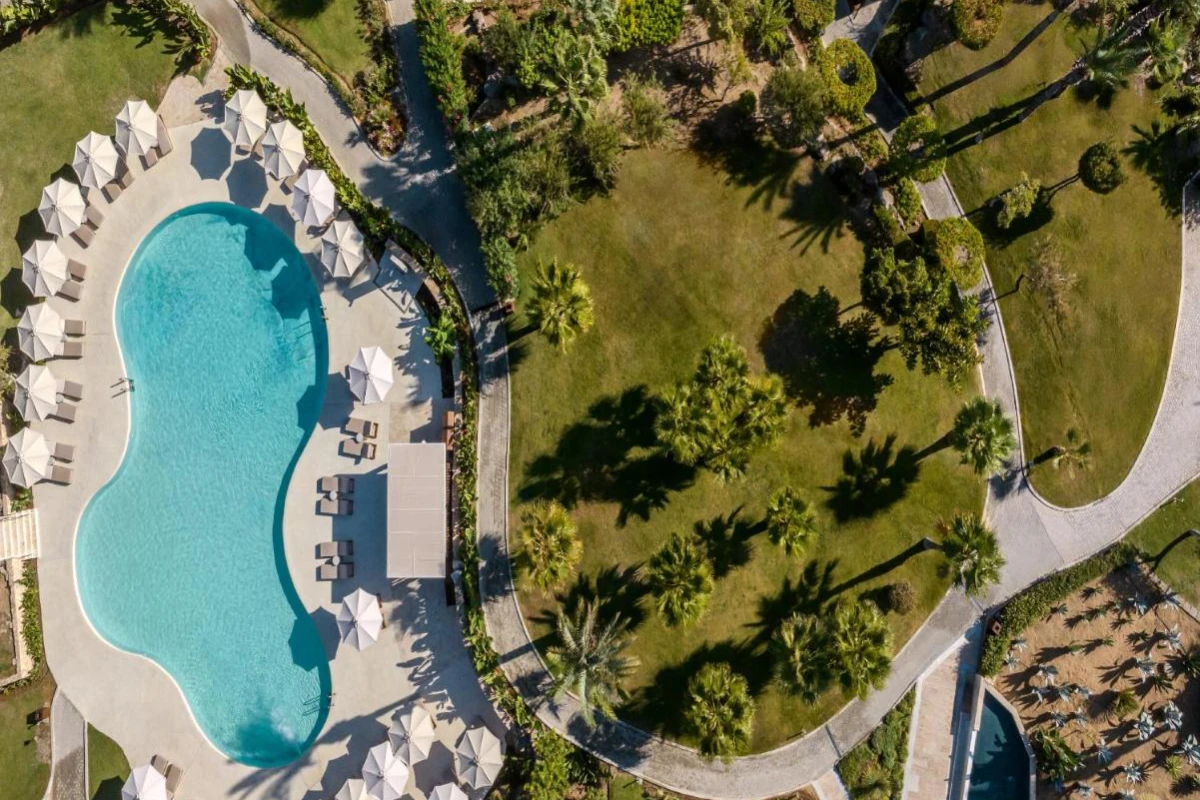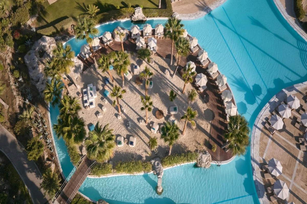 Dining captivates with Finicia's adults-only fine dining, where Mediterranean menus from France, Italy, and Greece unfold against palmerai vistas. Lagoon offers buffet-style dining with daily themed dinners by a jungle-like pool, while 1930's serves Italian classics, hot-stone specialties, and artisanal cheeses. Tavernaki delights with authentic Greek recipes using local ingredients, and the all-day Food Court tempts with wood-fired pizzas, grills, and gelatos from the Creperie-Gelateria. Bars like the colonial-style main bar and seafront beach bar craft premium cocktails and healthy juices, with vibrant evening entertainment featuring live music and movies. Six extraordinary pools, including a seawater lagoon with lazy rivers, an exotic landscape pool, and a tranquil garden pool, create a water paradise. The private pebble beach offers an adults-only zone and complimentary loungers, while the Elixir Spa, with its indoor heated pool, sauna, steam rooms, open-air massage rooms, and fitness facilities, nurtures rejuvenation. Watersports, tennis courts, and curated activities like island explorations enhance the experience.