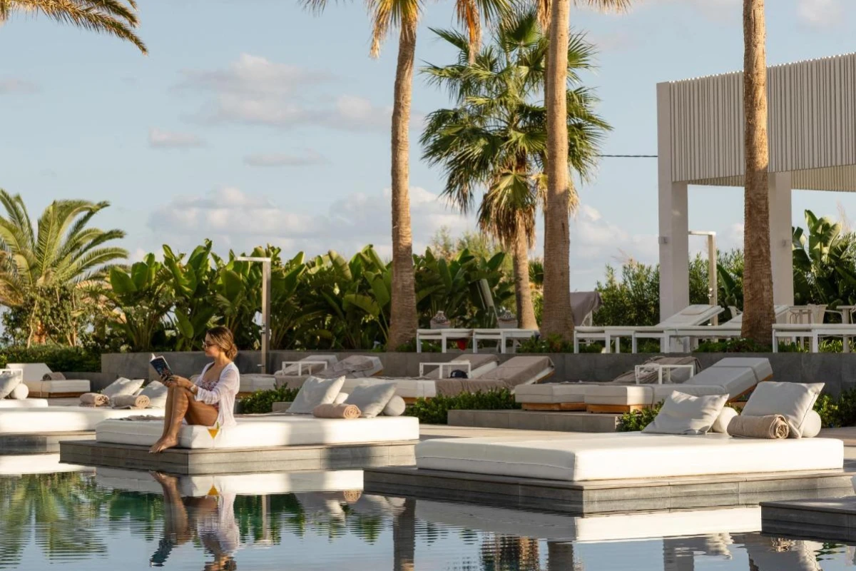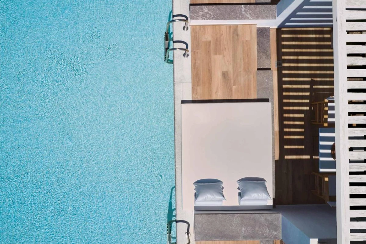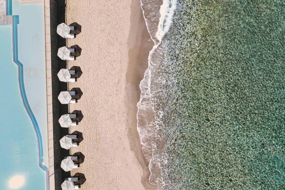 Grecotel Lux Me White, a five-star resort on Crete's north coast in Pigianos Kampos, graces a 1-km Blue Flag sand and pebble beach, blending traditional Greek architecture with modern elegance near vibrant Rethymno.