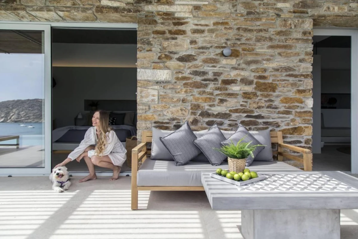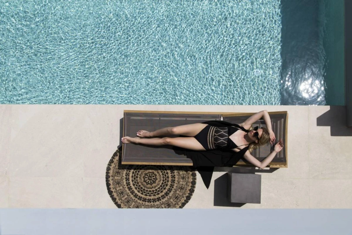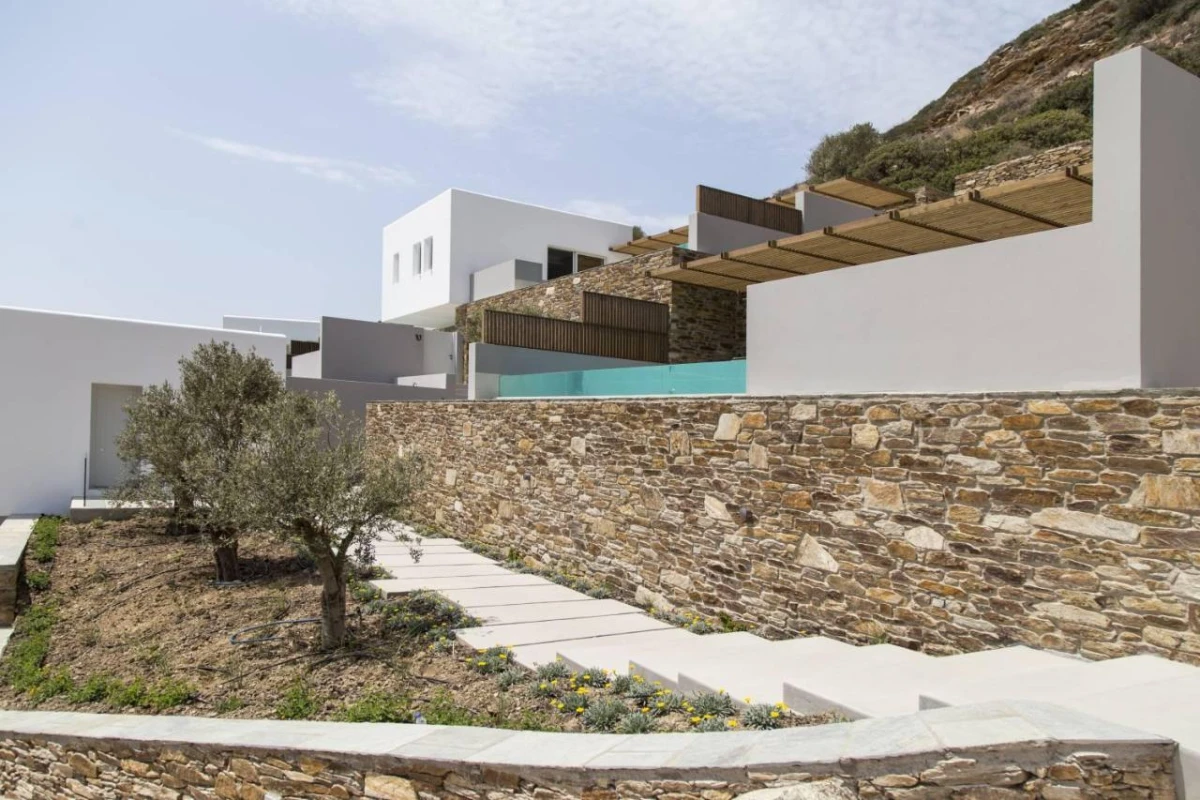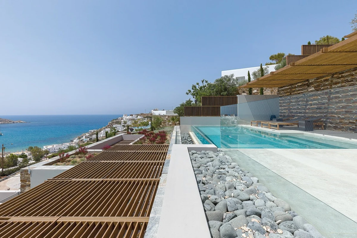 Hideout Suites, a five-star boutique retreat above Mylopotas Beach in Ios, offers 12 luxurious suites blending Cycladic white-washed charm with contemporary elegance, set against the shimmering Aegean Sea.