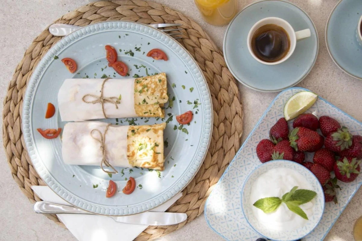 Each suite features air-conditioned interiors with minimalist decor, flat-screen satellite TVs, coffee machines, and seating areas that evoke serenity. Private bathrooms with walk-in showers, bathrobes, slippers, and premium toiletries elevate comfort, while private verandas with lounge areas and pools unveil mesmerizing sea views. Select suites include fully equipped kitchens with ovens, fridges, and stovetops, perfect for tailored dining. Guests are welcomed with complimentary wine, champagne, fruits, and chocolates.