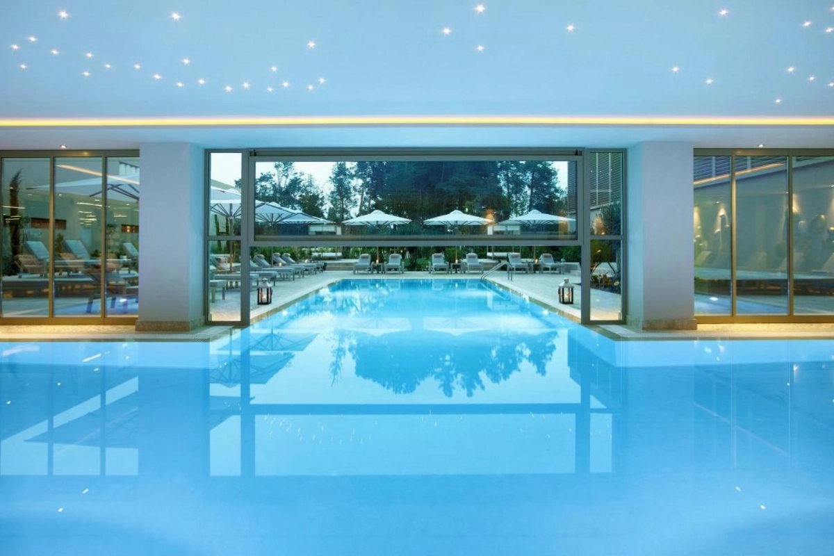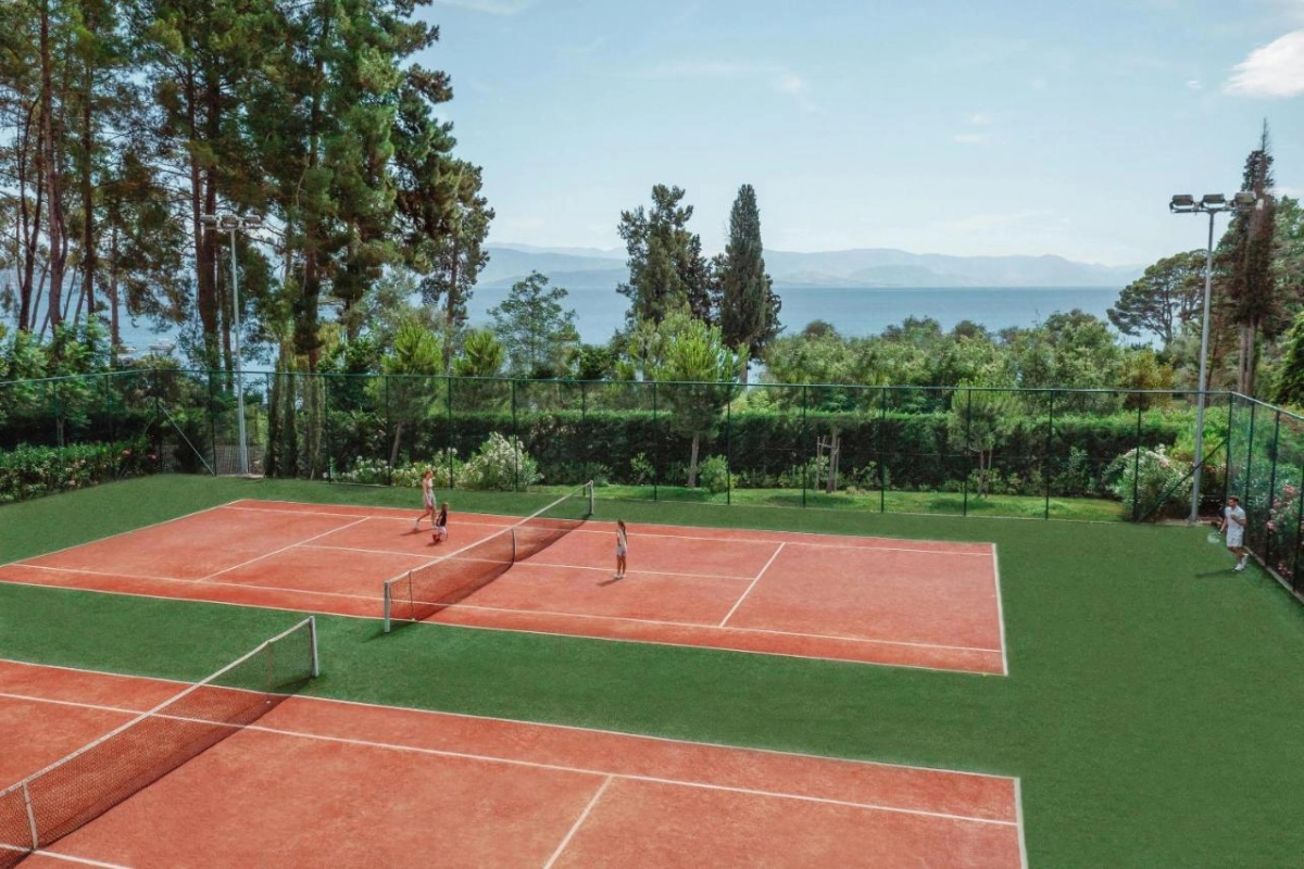 Dining captivates with six à la carte restaurants crafted by Michelin-starred chefs, showcasing modern Greek at Ergon, traditional Corfu flavours at Kerkyra, and contemporary Greek at Ouzo. Fresco serves authentic Italian, Provence offers sophisticated French cuisine, and Anaya brings Asian and Oriental classics. Two Mediterranean buffet venues, including Flavors, provide vibrant variety, complemented by fine wines from the Ikos collection. The Dine-Out program invites guests to savour local restaurants in nearby Dassia at no extra cost. Ten bars, from the chic Lobby Bar to the adults-only Night Club and the open-air Teatro Bar, craft signature cocktails and premium beverages, with the Gelaterie offering snacks and ice cream. Seven pools, nestled in landscaped gardens, include a children's section, while the private beach, framed by pines and olive trees, offers complimentary loungers. The Ikos Spa by Anne Semonin Paris pampers with tailored treatments using natural ingredients, alongside two fitness rooms, an outdoor hot tub, and wellness activities like yoga and Pilates. Sports enthusiasts enjoy two floodlit tennis courts, beach volleyball, and watersports like paddleboarding and windsurfing, while an open-air cinema adds evening charm.